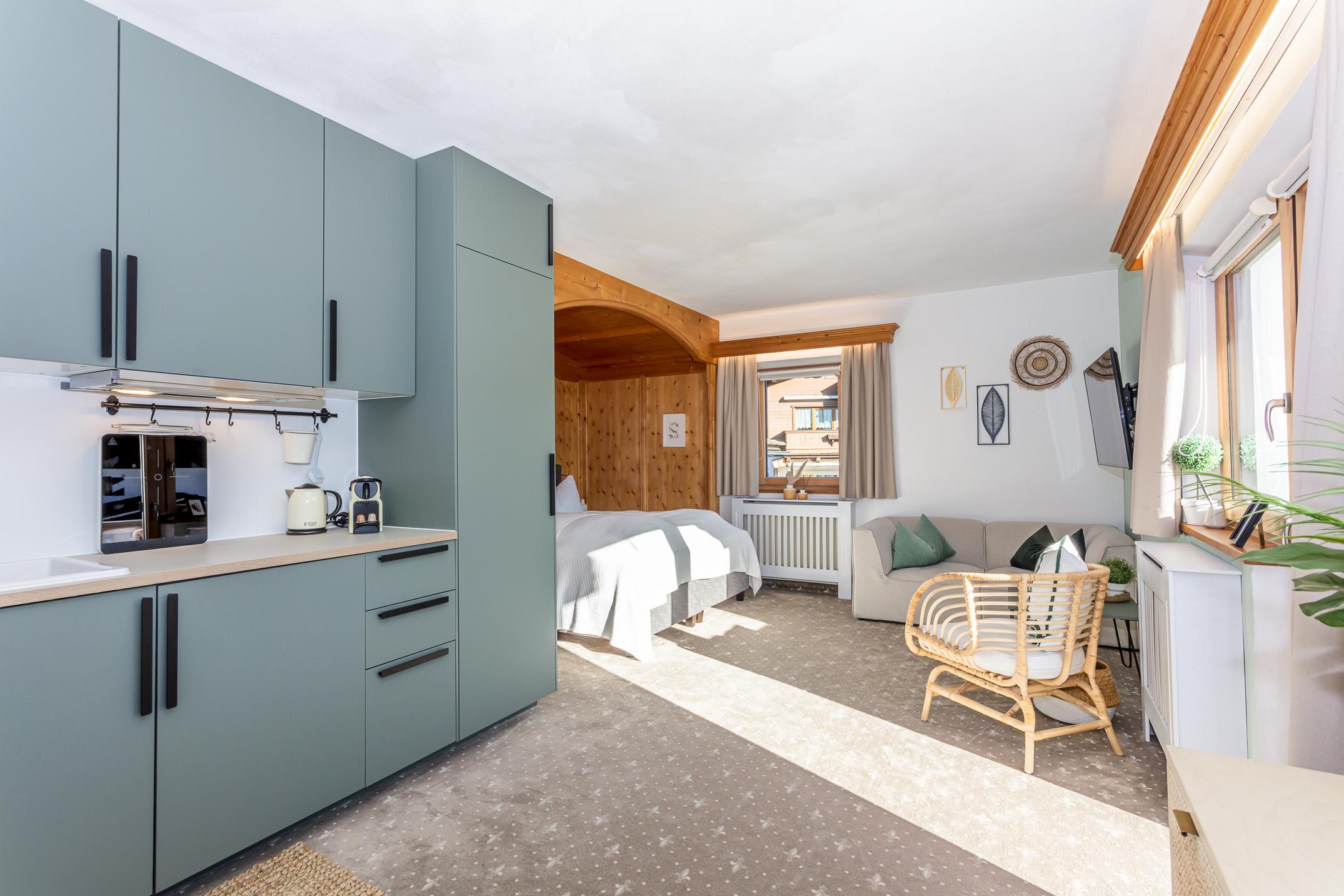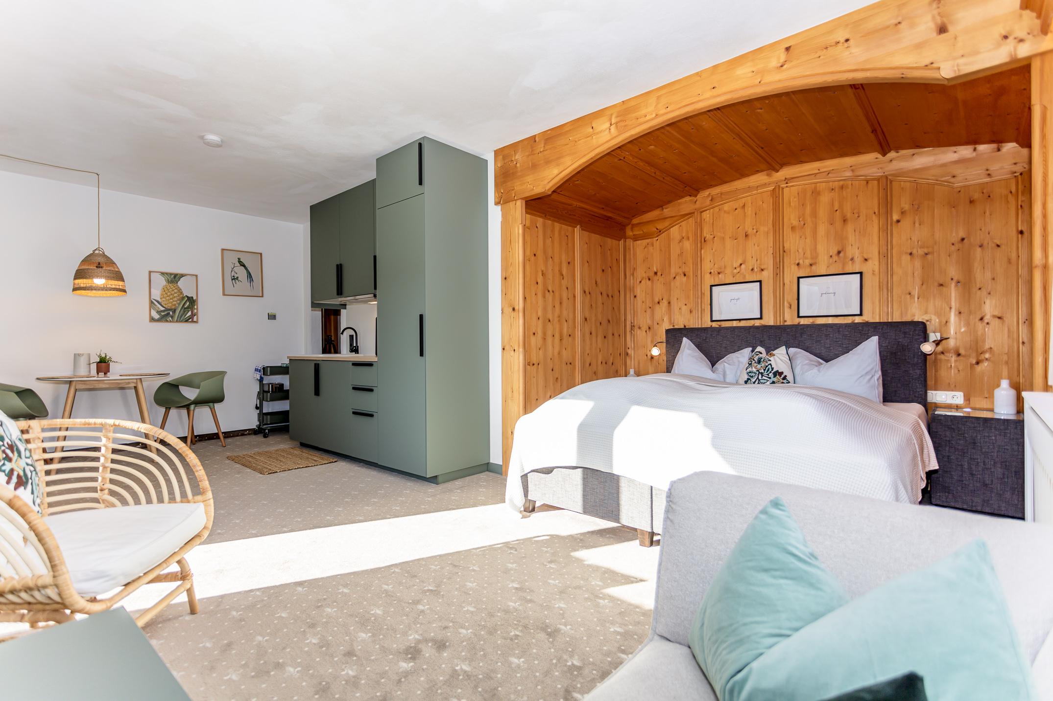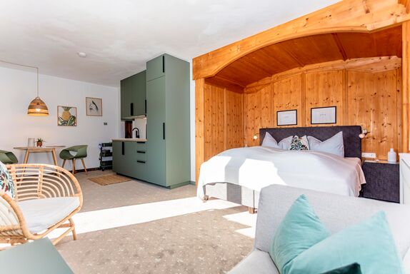 Unsere Ferienanlage umfasst insgesamt vier geräumige und komfortable Appartements sowie zwei gemütliche Studios. Jede Unterkunft wurde mit viel Liebe zum Detail gestaltet und bietet dir den idealen Rückzugsort, um dich nach einem aufregenden Tag in den Bergen zu entspannen.
