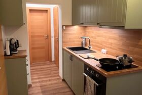 Das Studio mit 28m2 verfügt über ein Schlafzimmer mit Balkon und Gartenblick, eine Küche, eine kleine Essecke, eine Dolce Gusto Kaffeekapselmaschine, einen Wasserkocher, Kaffee- und Teegeschirr, einen Flachbild-TV und kostenloses WLAN. An der Unterkunft steht ein kostenloser Parkplatz zur Verfügung.