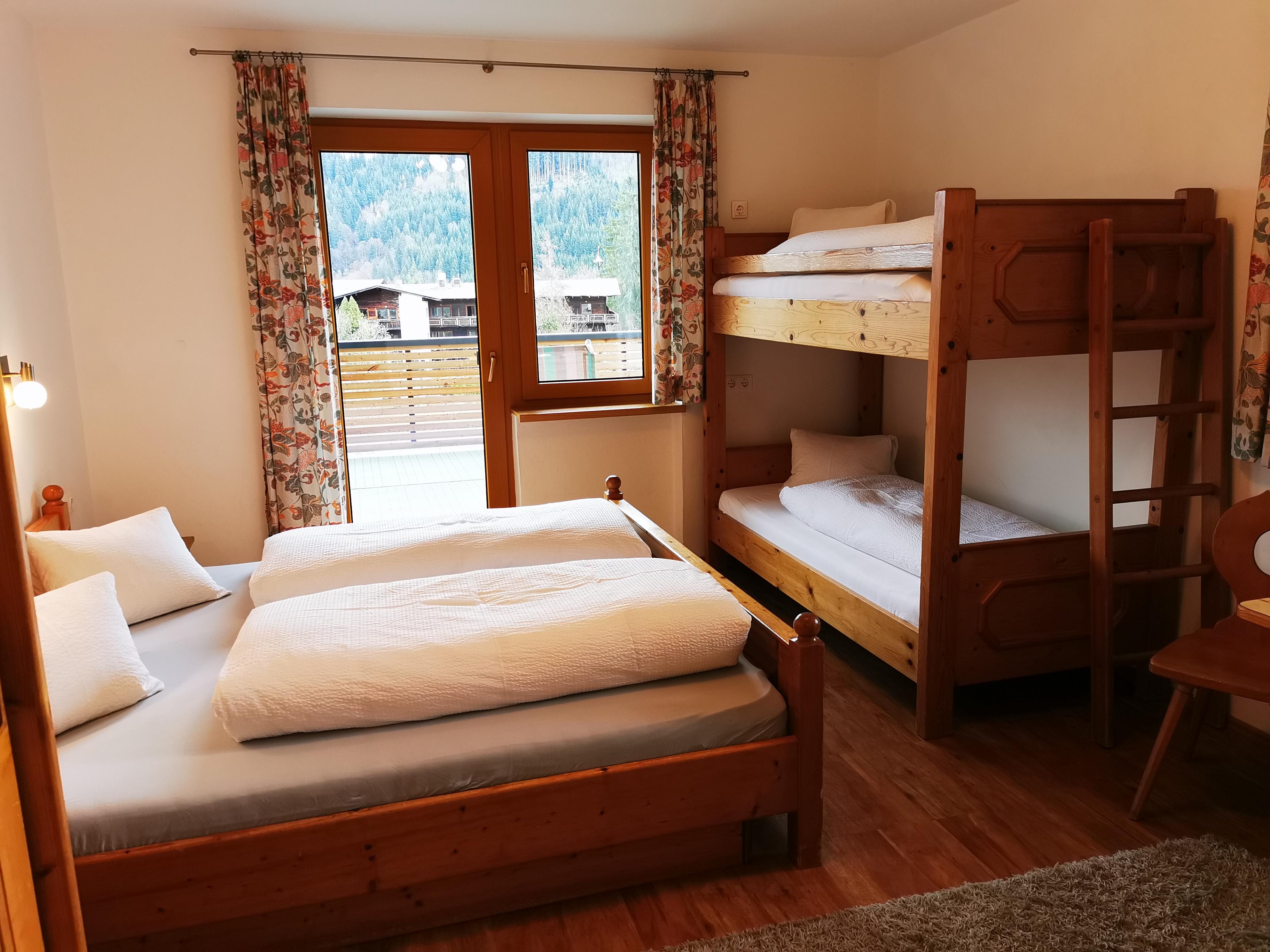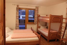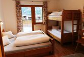 Unser Vierbettzimmer haben ein Doppelbett und ein Etagenbett. Weiters gibt es einen kleinen Tisch und einen Kleiderschrank.