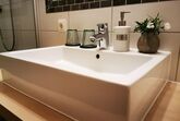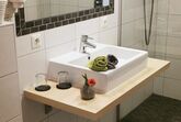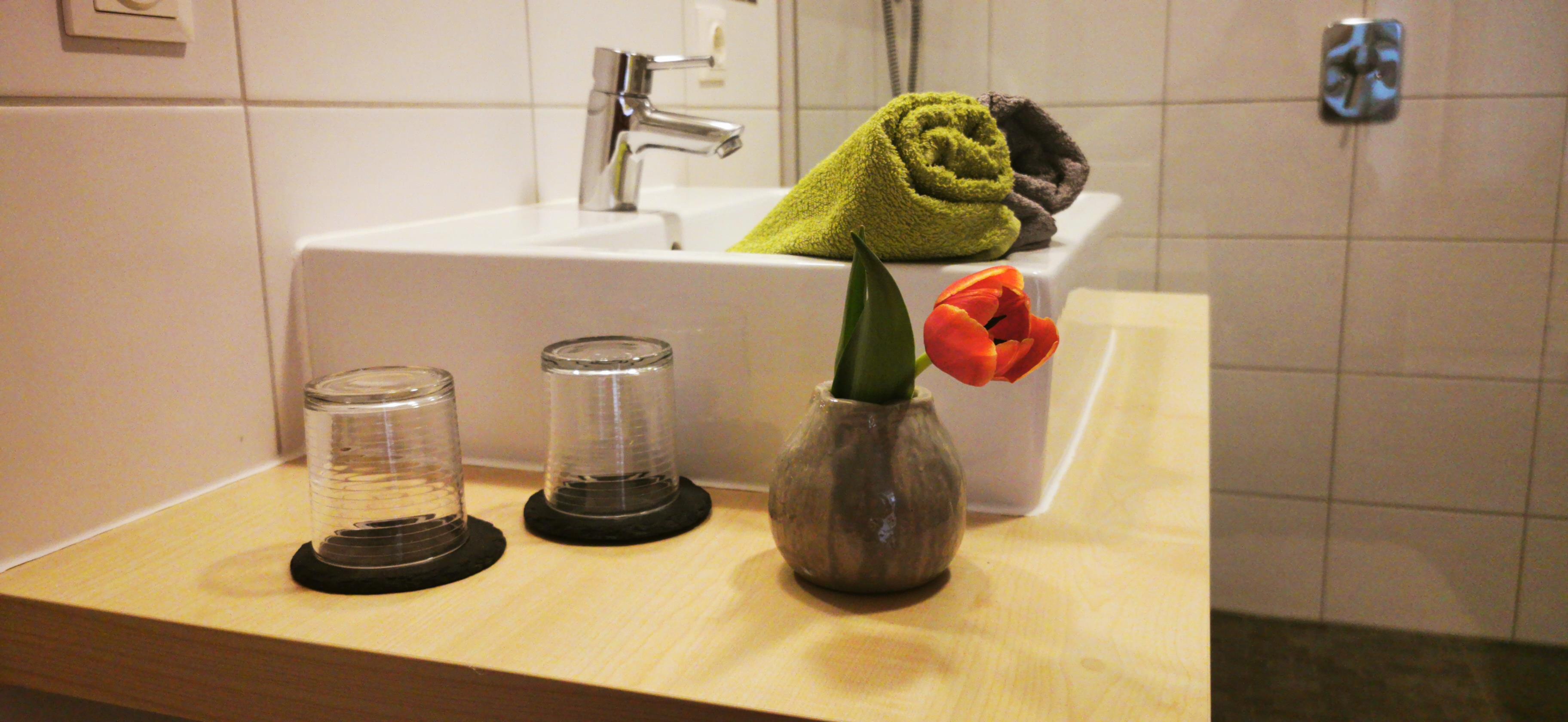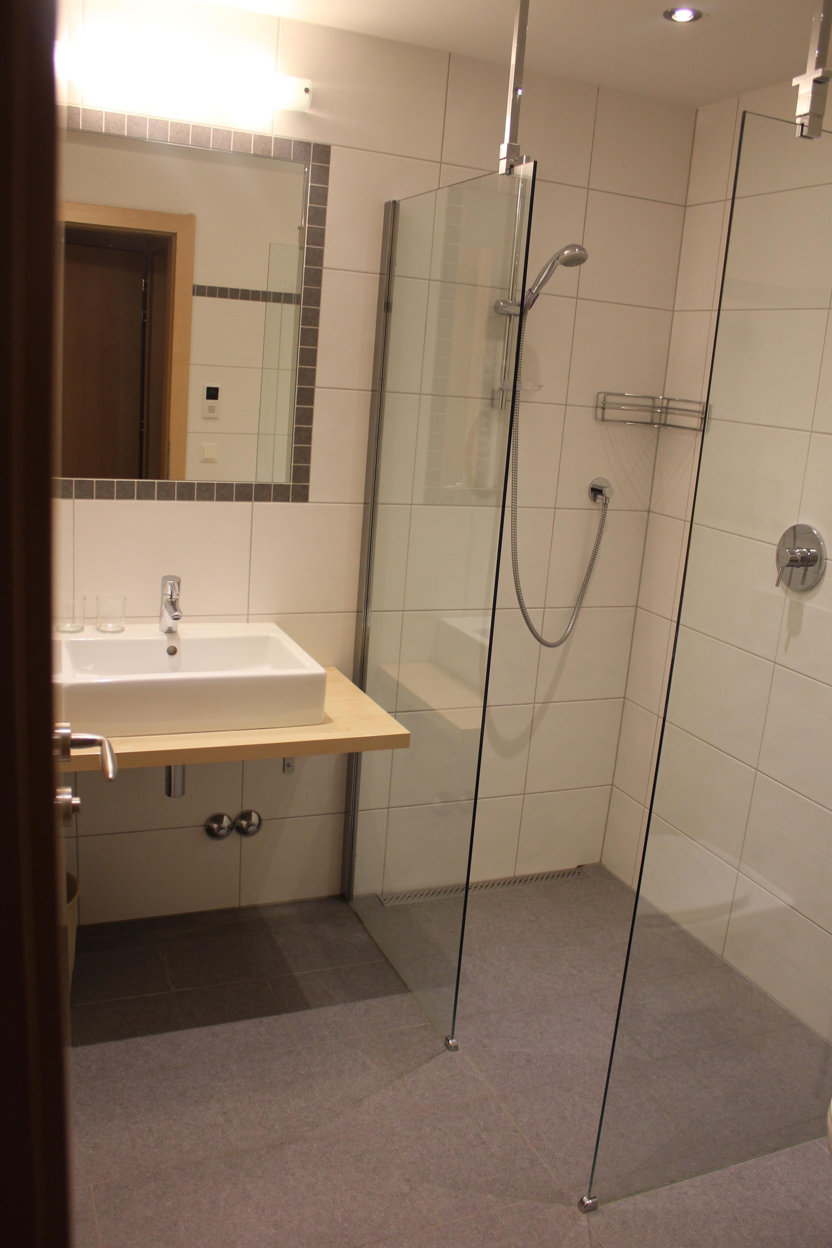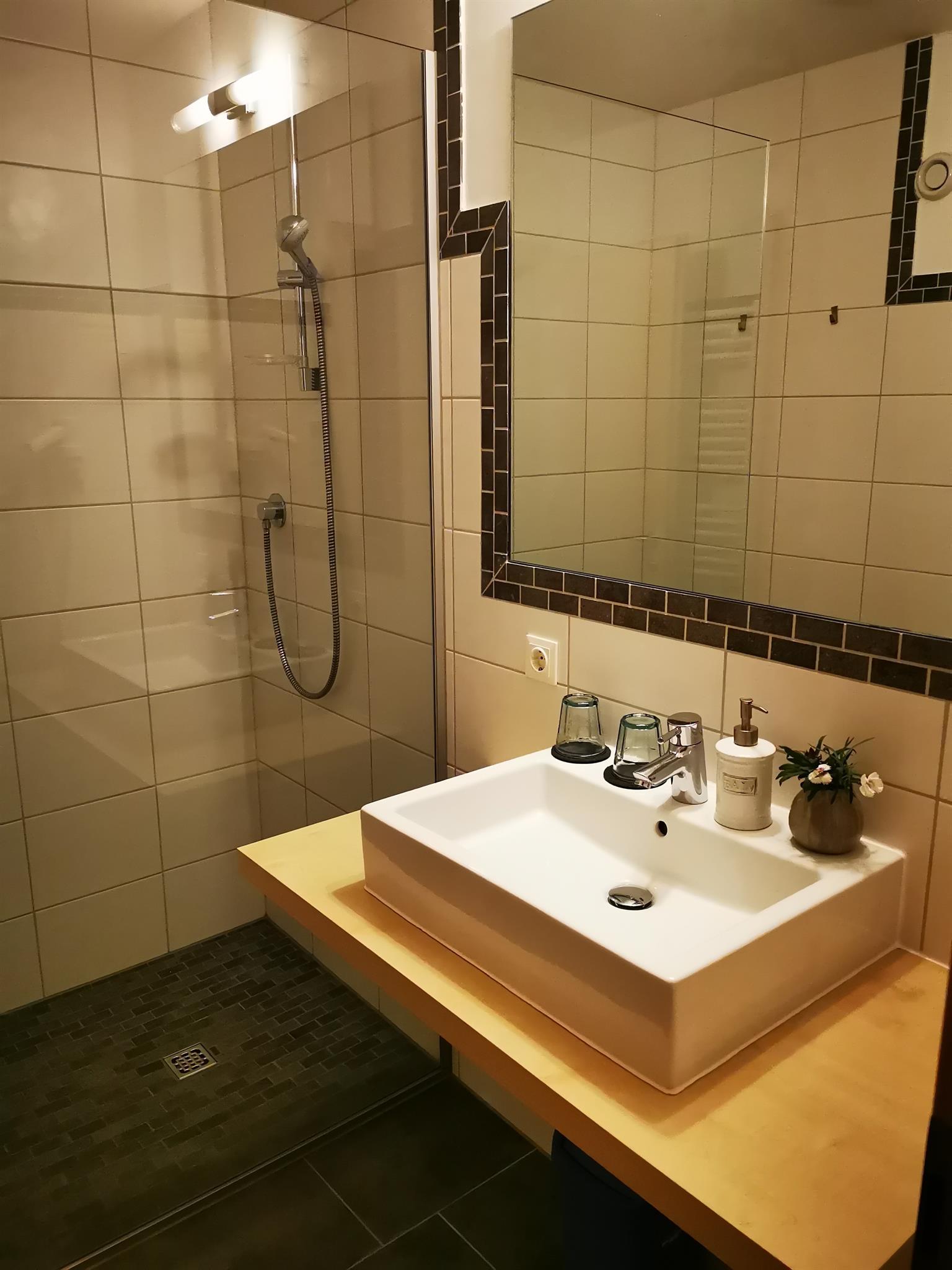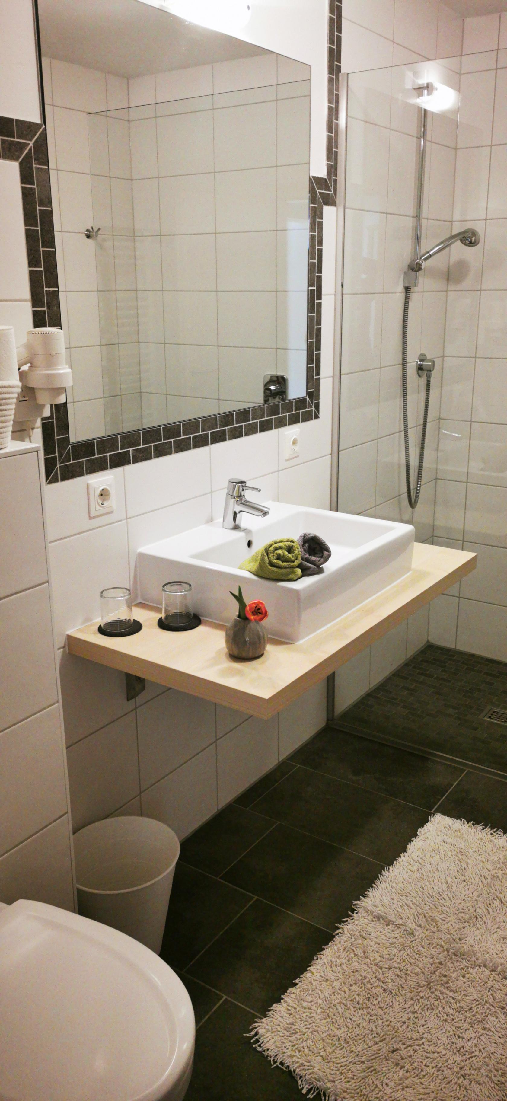 Das Bad ist neu renoviert in den Vierbettzimmern.