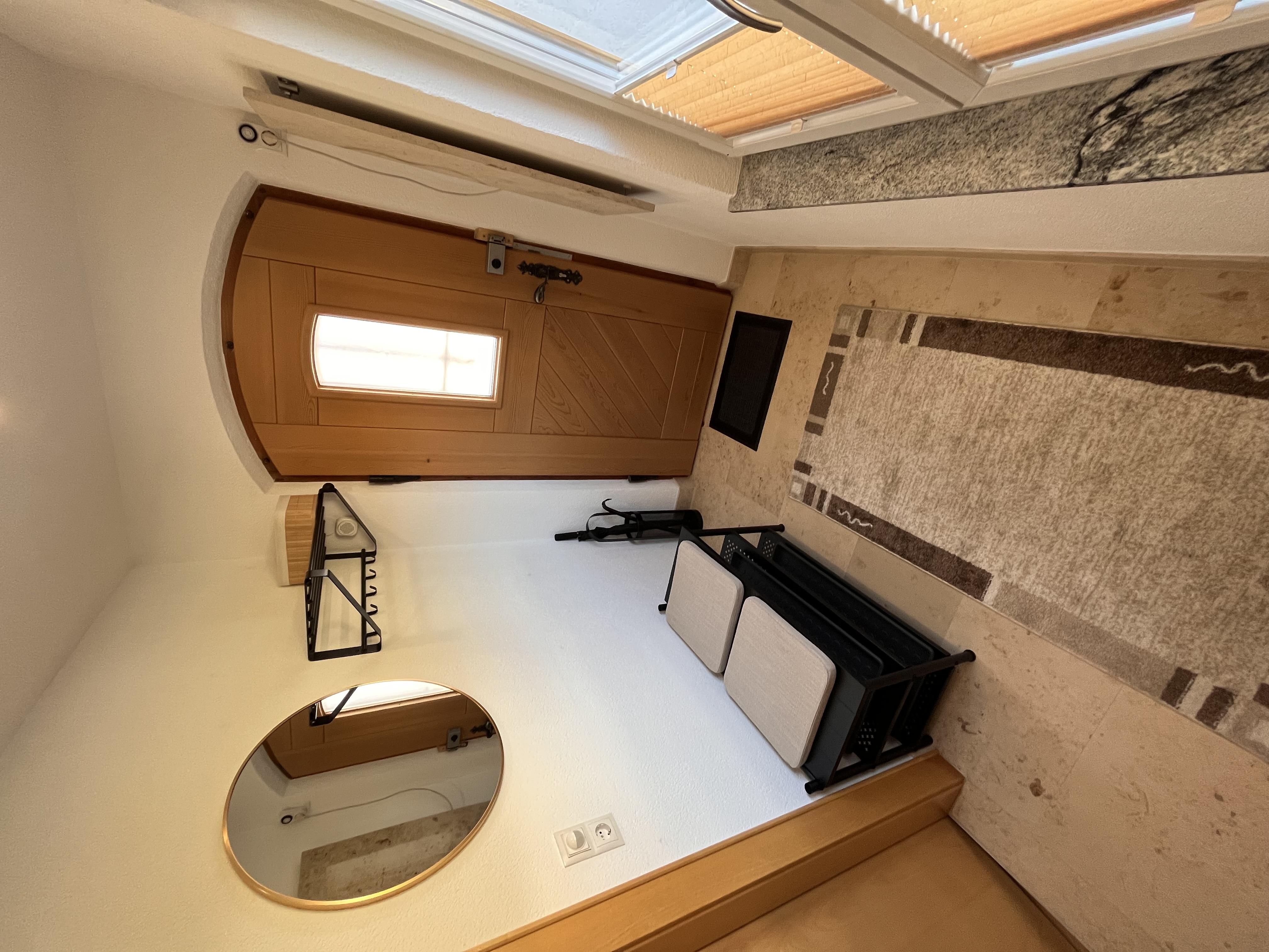Das Apart Mark verfügt über eine Wohnküche (mit Schlafcouch), ein Schlafzimmer und eine Dusche mit WC.