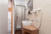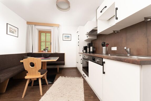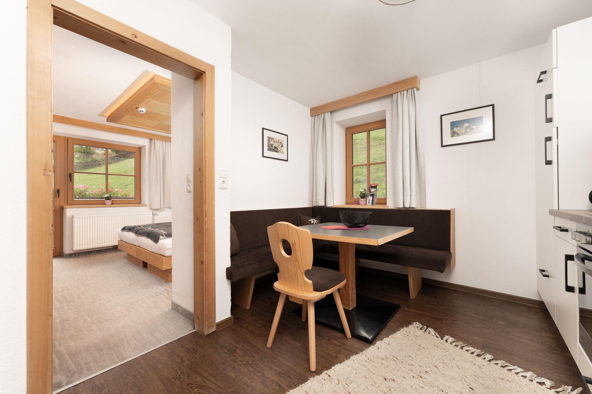 Gemütliches Appartement für 2 Personen mit 1 Doppelzimmer mit Balkon, Badezimmer mit Dusche/WC, Haarföhn. Voll ausgestattete Wohnküche mit Backofen, Spülmaschine, Kaffeemaschine,... eingebautem Eßbereich, Kabel-Flat-TV. Größe: ca. 30 m². Getrennte Betten auf Anfrage möglich.
