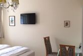 Das Turmzimmer ist eines unserer Studios, welches mit Sat/TV, Dusche/WC und einer Kochzeile mit Speiseecke ausgestattet ist. Dieses Zimmer wurde in einem schlichten Gelbblauen Stil neu renoviert.