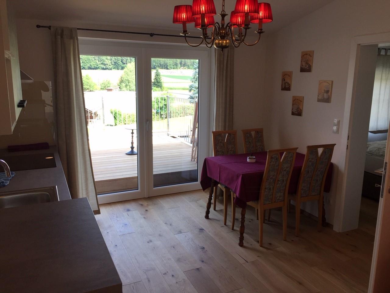 Der Waldblick ist eines unserer Apartments mit ca. 60m2. Das Apartment befindet sich im Neubau und im 1. Stock und ist mit Dusche, seperatem WC, Sat/TV, Vorraum, Wohnküche und zwei seperaten Schlafzimmern mit Boxspringbetten ausgestattet. Das Apartment hat auch einen großzügige Terrasse mit Blick auf den Wald und in den Garten wo sich unser überdachter und bezeitzer Pool befindet.