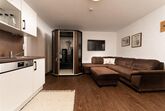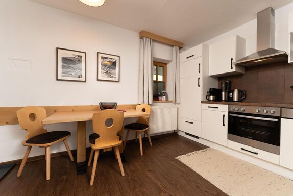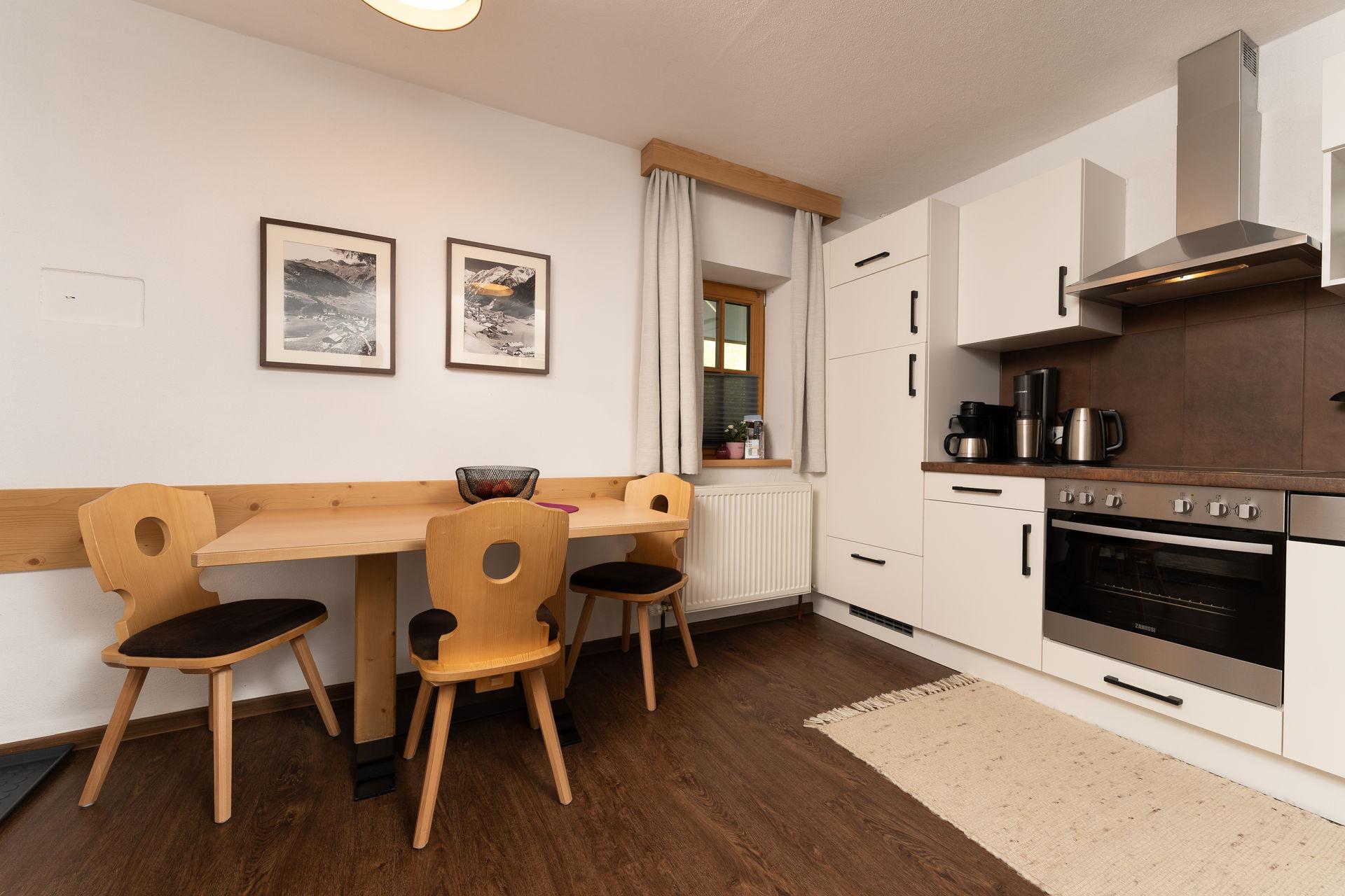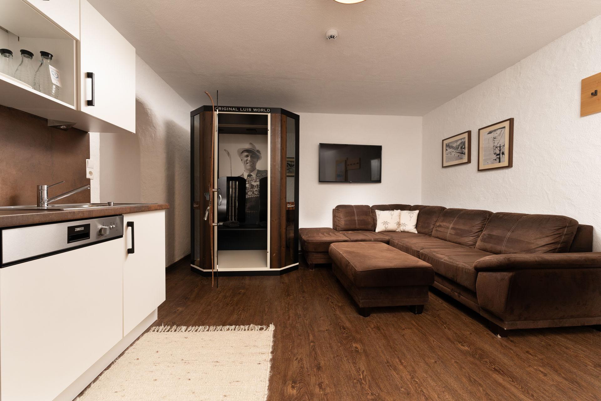 Neu renoviertes und modern ausgestattetes Appartement mit voll ausgestatteter Wohnküche (Cerankochfeld, Backofen, Spülmaschine, Kühlschrank, Kaffeemaschine,...) mit Schlafsofa für die 3. + 4. Person, Kabel-TV, Doppelzimmer mit Dusche/WC und Infrarotkabine. Größe ca. 41 m². Getrennte Betten auf Anfrage möglich.
