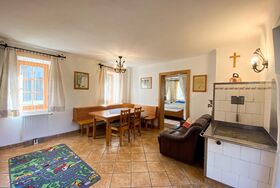 1 Wohnraum mit urigem Kuchlherd, Sitzecke, Kochnische (2 Kochplatten, Backrohr, Mikro, Kühlschrank, Geschirrspüler, Kaffeemaschine, Mixer, Geschirr, Gläser), Sat-TV, ADSL-Internetzugang, Hifi-Anlage, Garderobe, 1 Schlafraum mit Himmelbett und Schrank, 1 Kinderzimmer mit 3 Einzelbetten (1x Stockbett), 1 Dusche/WC mit Fön und Radio.