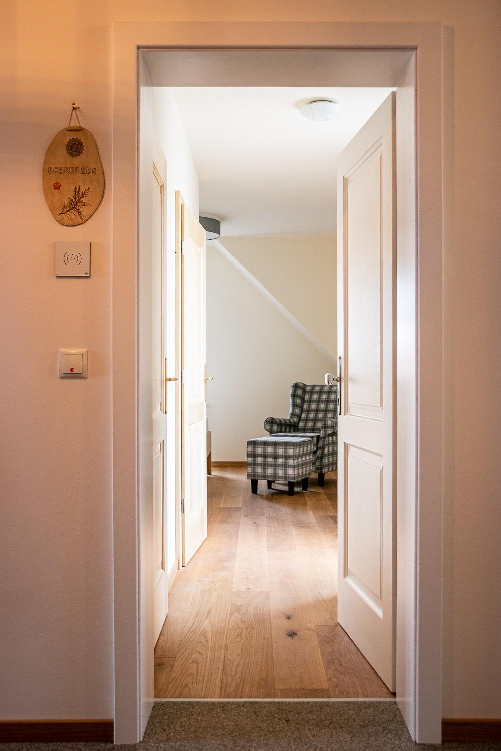 Genießen Sie dieses liebevoll eingerichtete 25 m² große Doppelzimmer inkl. Terrasse mit einer traumhaften Aussicht. Hier können Sie in die Ferne bis nach Slowenien blicken und dabei zur Ruhe finden.