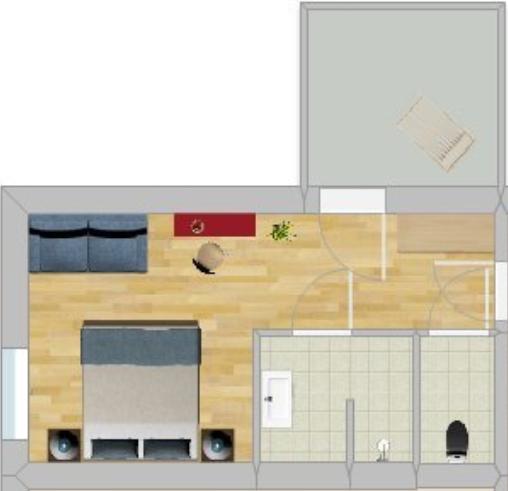 Das Zimmer befindet sich im 1. Stock und verfügt über ein Doppelbett, eine Sitzmöglichkeit, Fernseher, kostenlosem W-LAN sowie Badezimmer mit getrenntem WC.