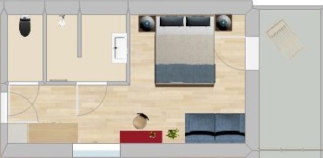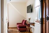 Es befindet sich im 1. Stock und verfügt über ein Doppelbett, eine Sitzmöglichkeit, Fernseher, kostenlosem W-LAN sowie Badezimmer mit getrenntem WC.