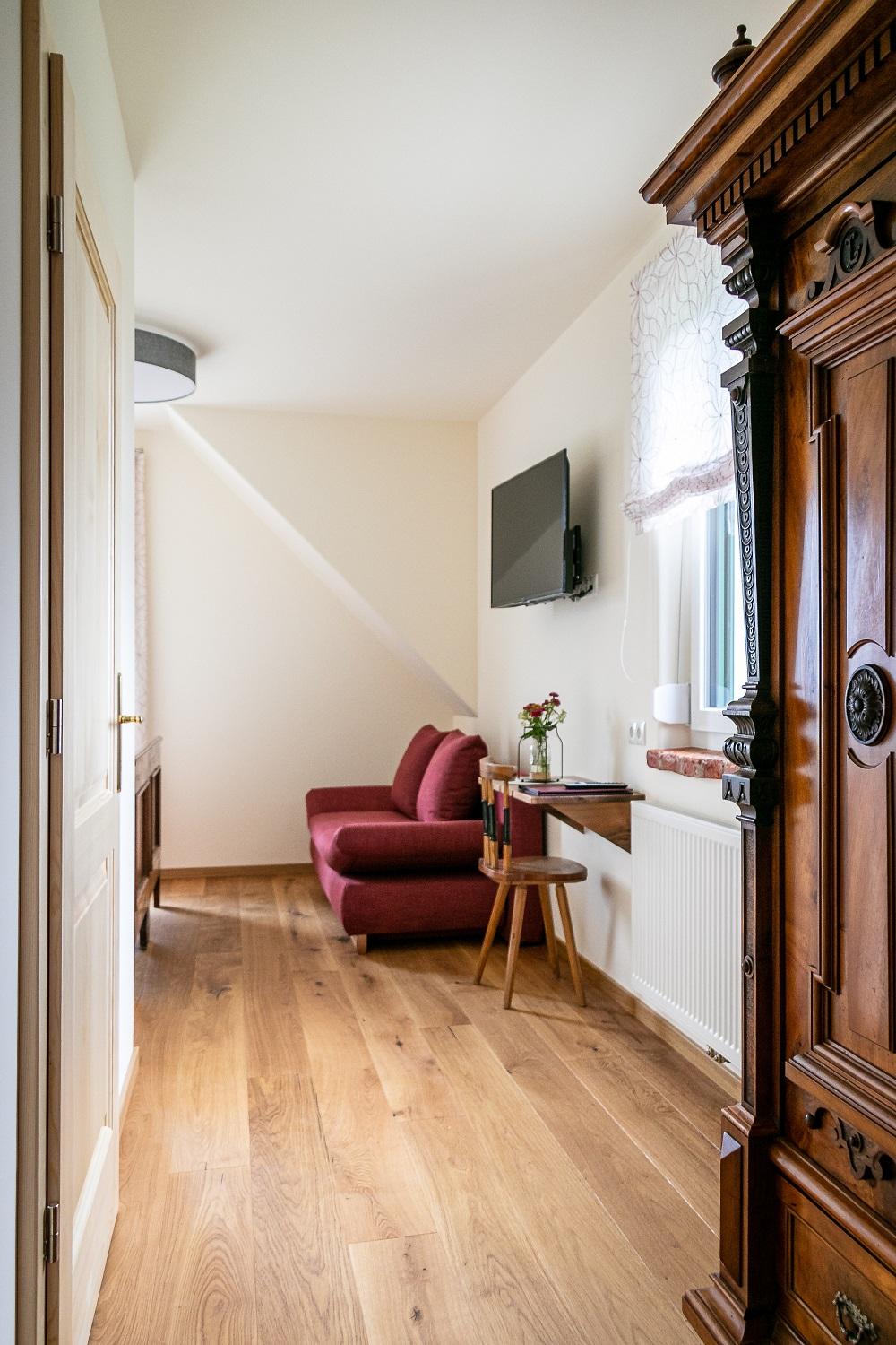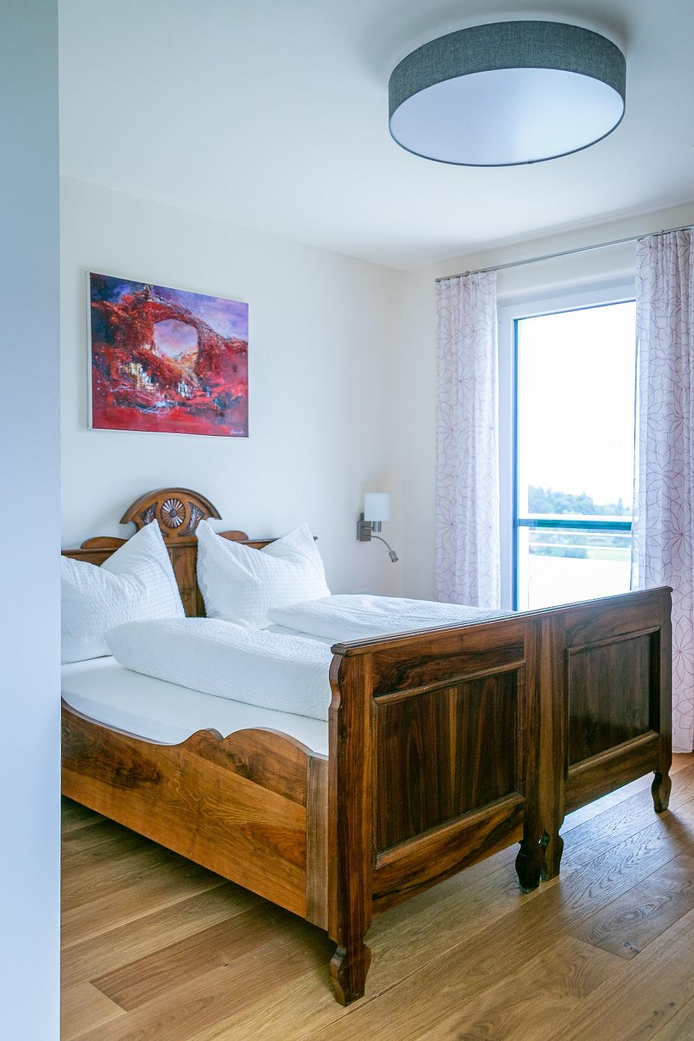 Dieses Doppelzimmer ist mit seinem über 100 Jahre alten und nun liebevoll restaurierten Bett etwas ganz besonderes.