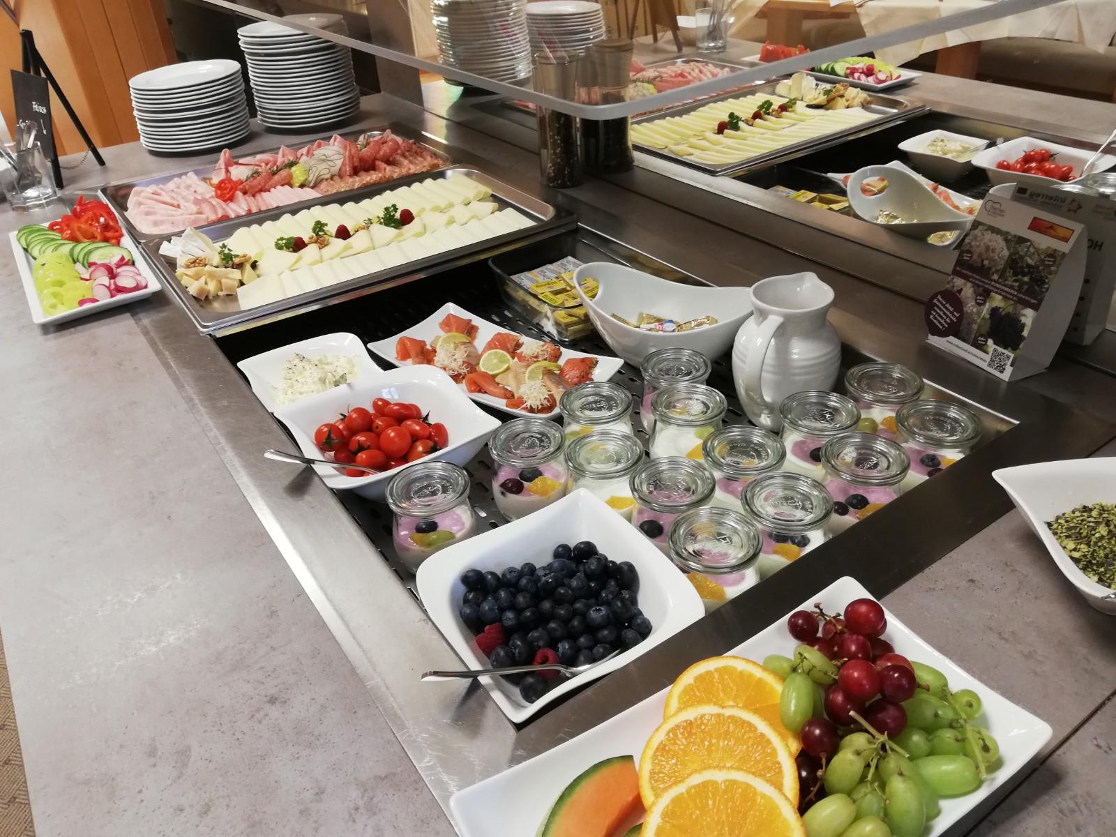 Am Frühstücksbuffet finden sich regionale Produkte und hausgemachte Köstlichkeiten. Gerne können Sie auf Anfrage unser Buffet auch ohne Nächtigung genießen.