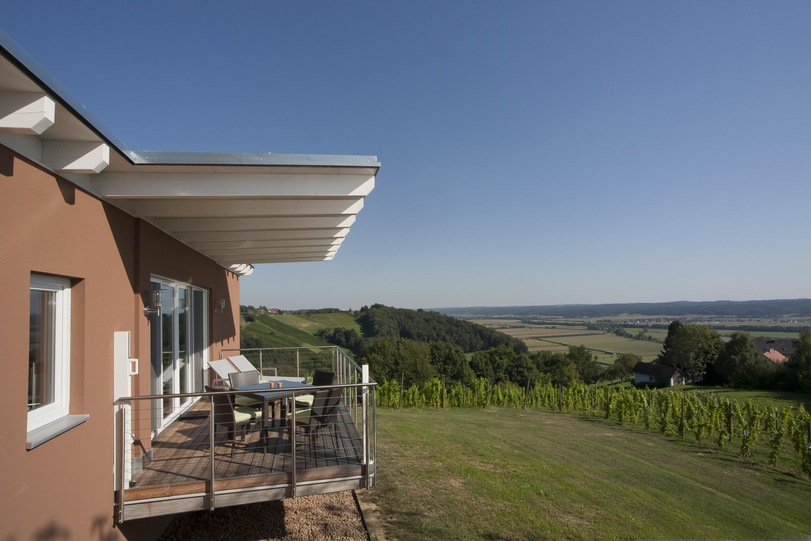 „Das Nussberg“, 60m² das moderne Weingartenhaus und „das Weinberg“, 80m² das traditionelle Kellerstöckl sind umgeben von Weinstöcken und befinden sich in absoluter Ruhelage. Atemberaubend ist der Ausblick auf den gegenüberliegenden Weinberg, zur Riegersburg und ins breite Raabtal mit seinen Kürbis- und Mais- und Getreideäckern.