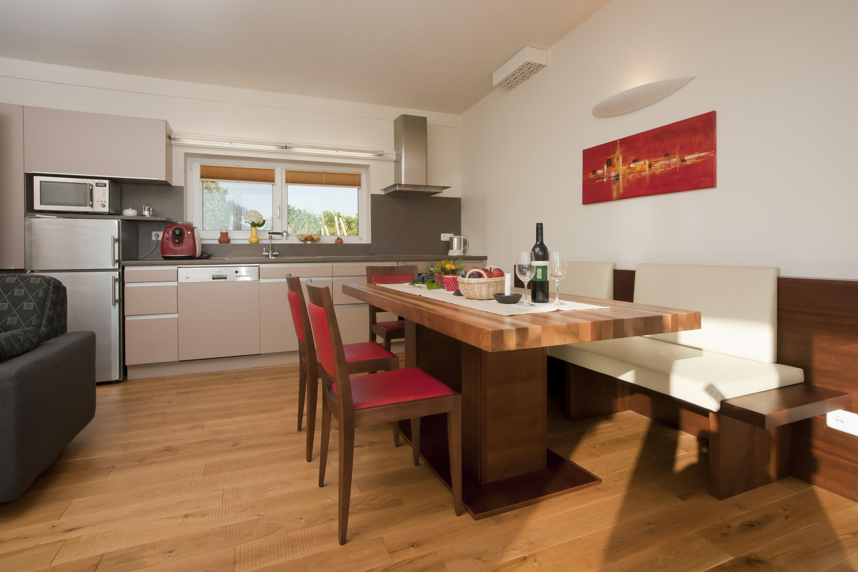 „Das Nussberg“ das moderne Weingartenhaus mit wunderbarem Aus- und Weitblick: Vollholzmöbel vom Tischlermeister, das hochwertige tueri Lebensenergiebett in Nussholz, Dielenböden in Eiche, gut ausgestattete Kochnische, grosser, heller gemütlicher Wohnraum mit schwebender Weingartenterrasse, eigene Sauna, Waschmaschine, Saeco Espressomaschine, uvm. Weinpatenschaft „Sauvignon blanc Nussberg“ für alle die gerne einmal Weinbauer sein möchten!