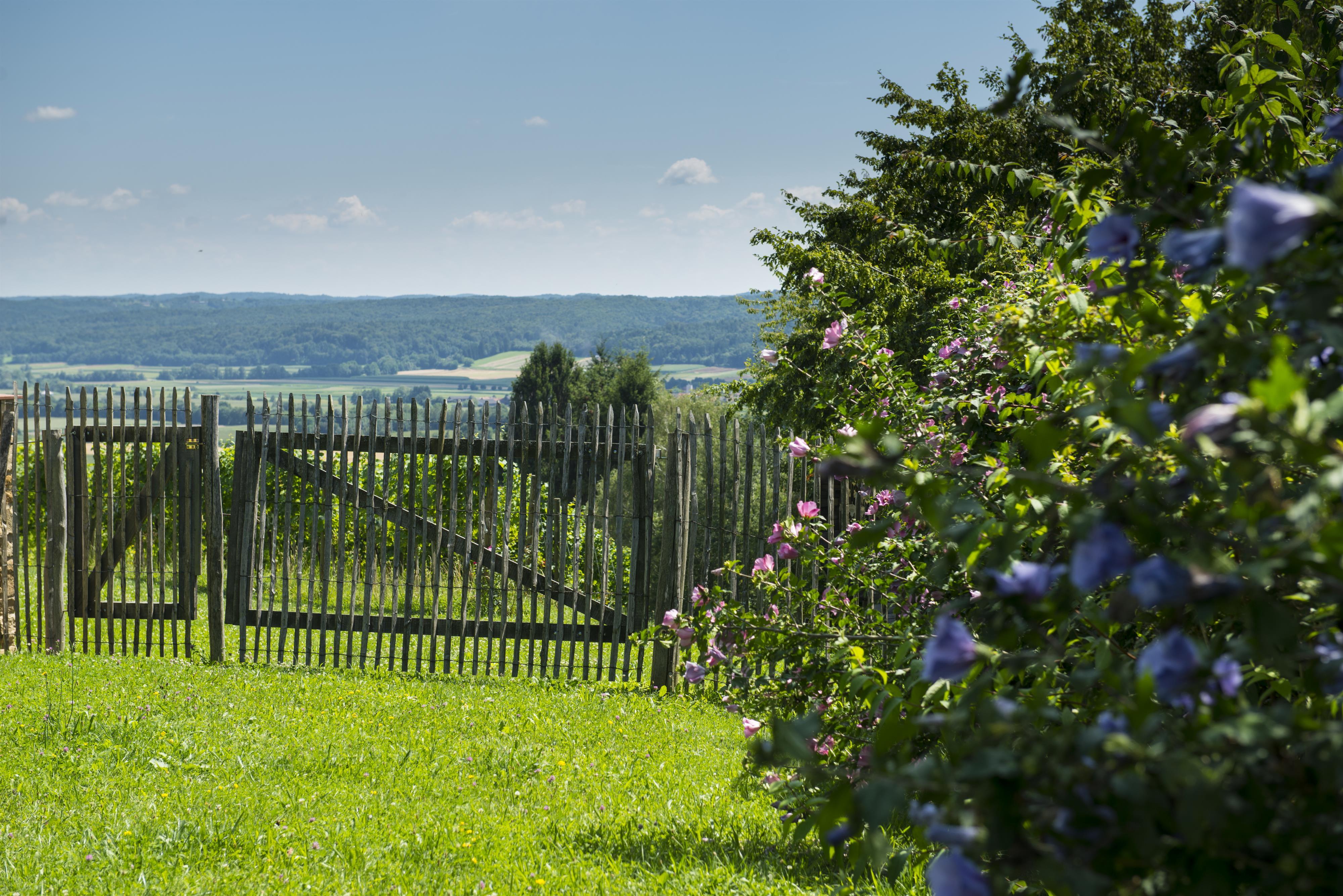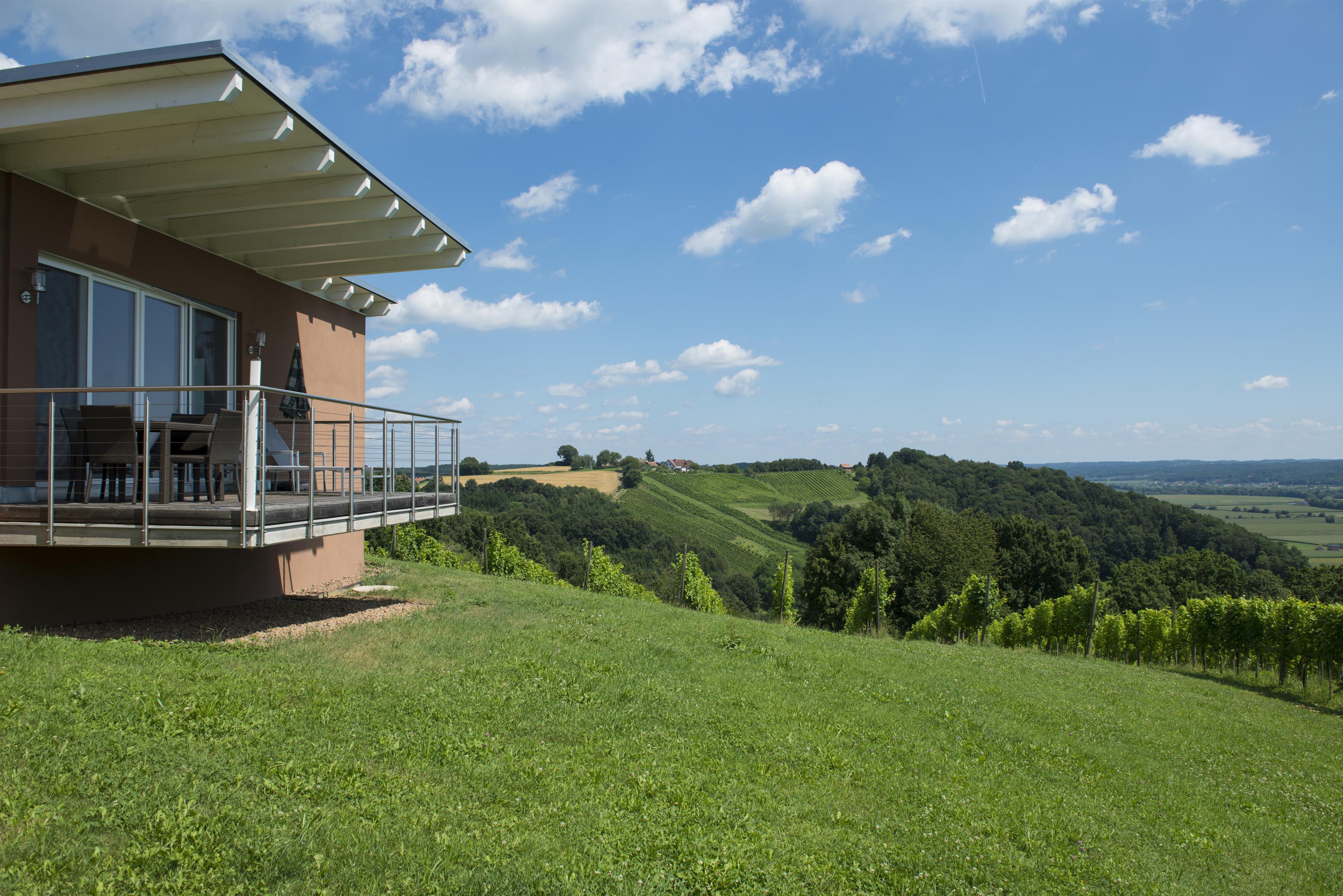 „Das Nussberg“, 60m² das moderne Weingartenhaus und „das Weinberg“, 80m² das traditionelle Kellerstöckl sind umgeben von Weinstöcken und befinden sich in absoluter Ruhelage. Atemberaubend ist der Ausblick auf den gegenüberliegenden Weinberg, zur Riegersburg und ins breite Raabtal mit seinen Kürbis- und Mais- und Getreideäckern.