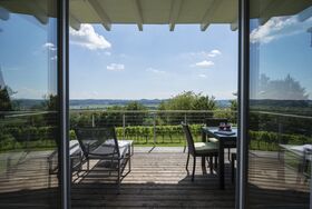 „Das Nussberg“, 60m² das moderne Weingartenhaus und „das Weinberg“, 80m² das traditionelle Kellerstöckl sind umgeben von Weinstöcken und befinden sich in absoluter Ruhelage. Atemberaubend ist der Ausblick auf den gegenüberliegenden Weinberg, zur Riegersburg und ins breite Raabtal mit seinen Kürbis- und Mais- und Getreideäckern.