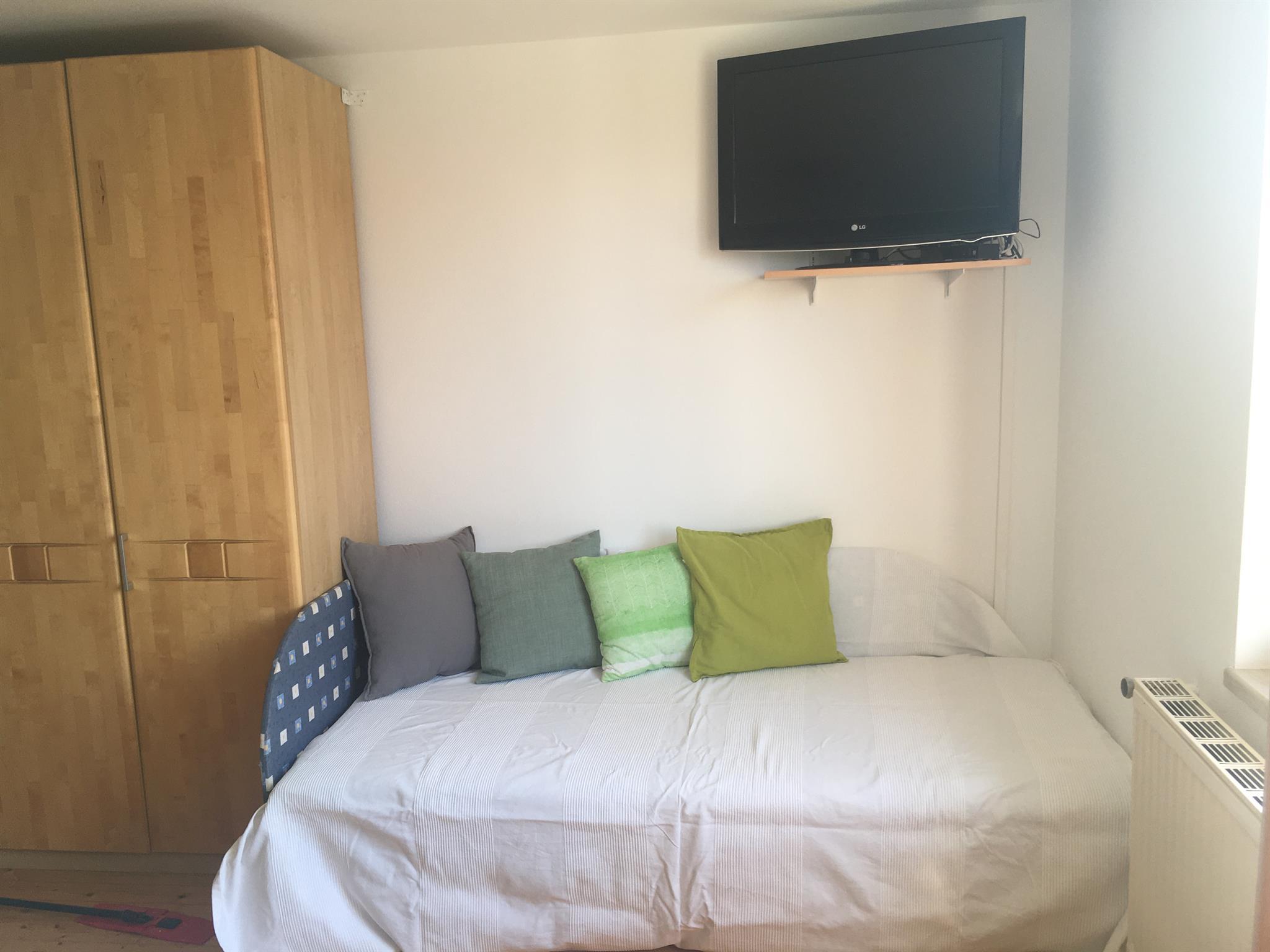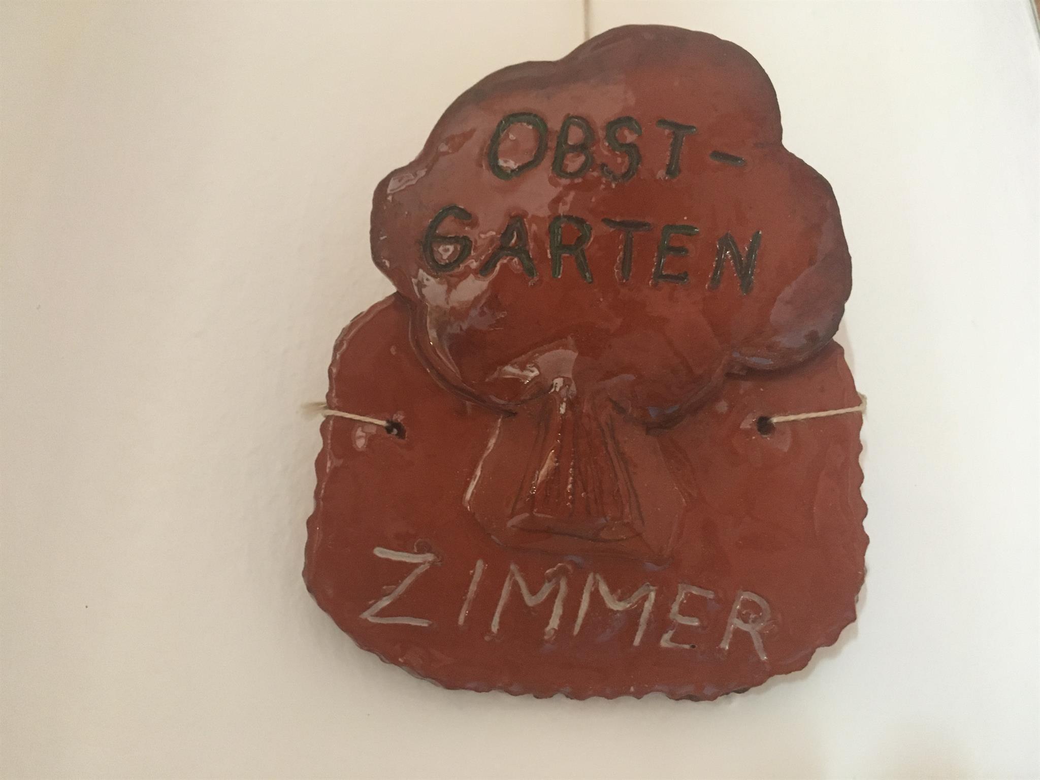 Geräumig und barrierefreies Doppelzimmer mit WLAN und TV. Schöne Aussicht zum Pfirsichgarten mit Schlafcouch für Erwachsene bzw. Kind. Badezimmer mit WC und Dusche (Fön vorhanden).