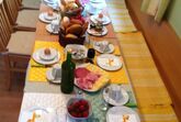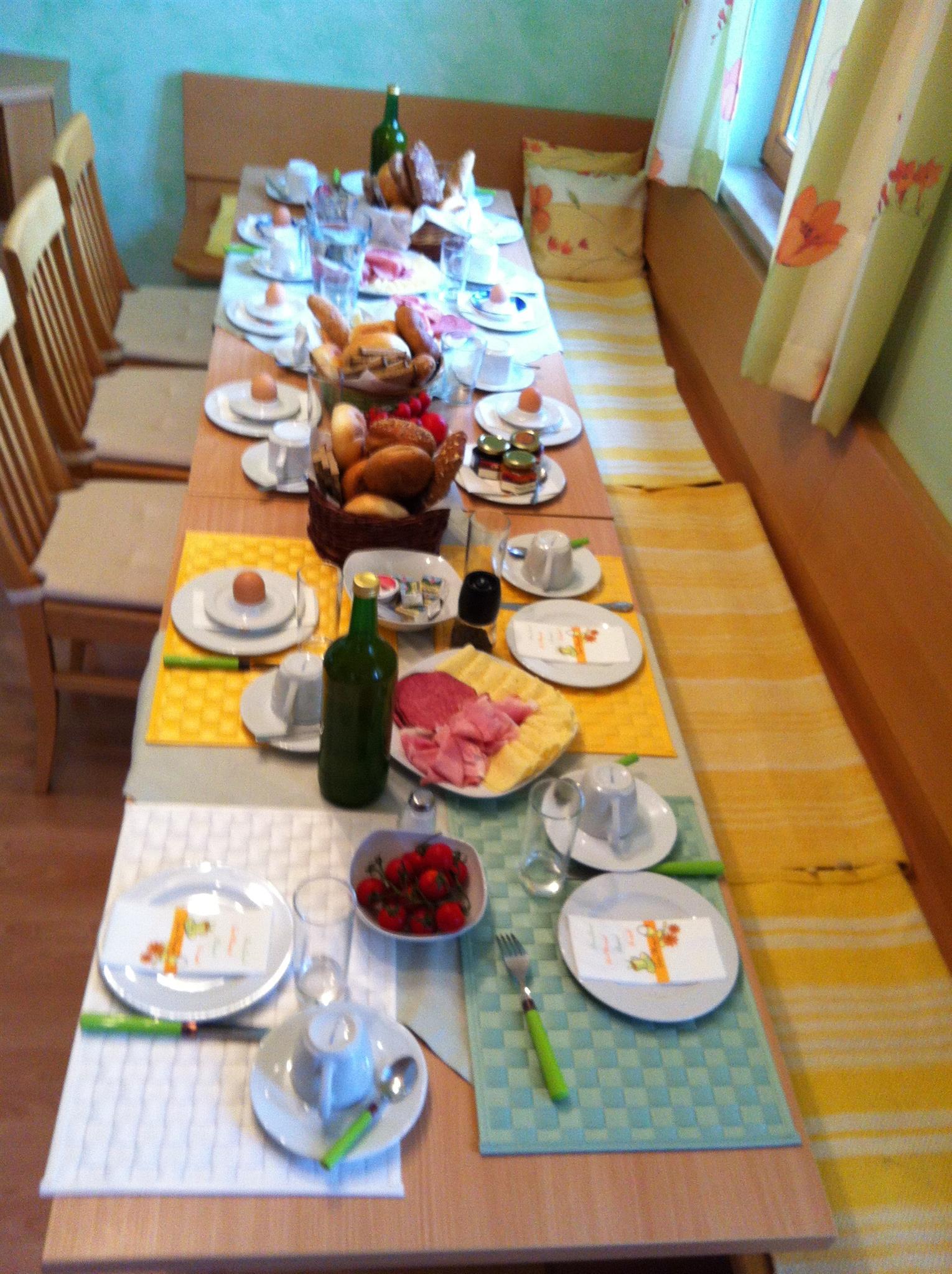 Zum Frühstück serviert Sabine Weiß herzhafte, hausgemachte Spezialitäten wie zum Beispiel herrliche Marmeladen, uriges, im Holzofen gebackenes Brot und kostbarer Blütenhonig. Ihr Frühstück können Sie auch auf der sonnigen Dachterrasse genießen. So kann der Tag beginnen.