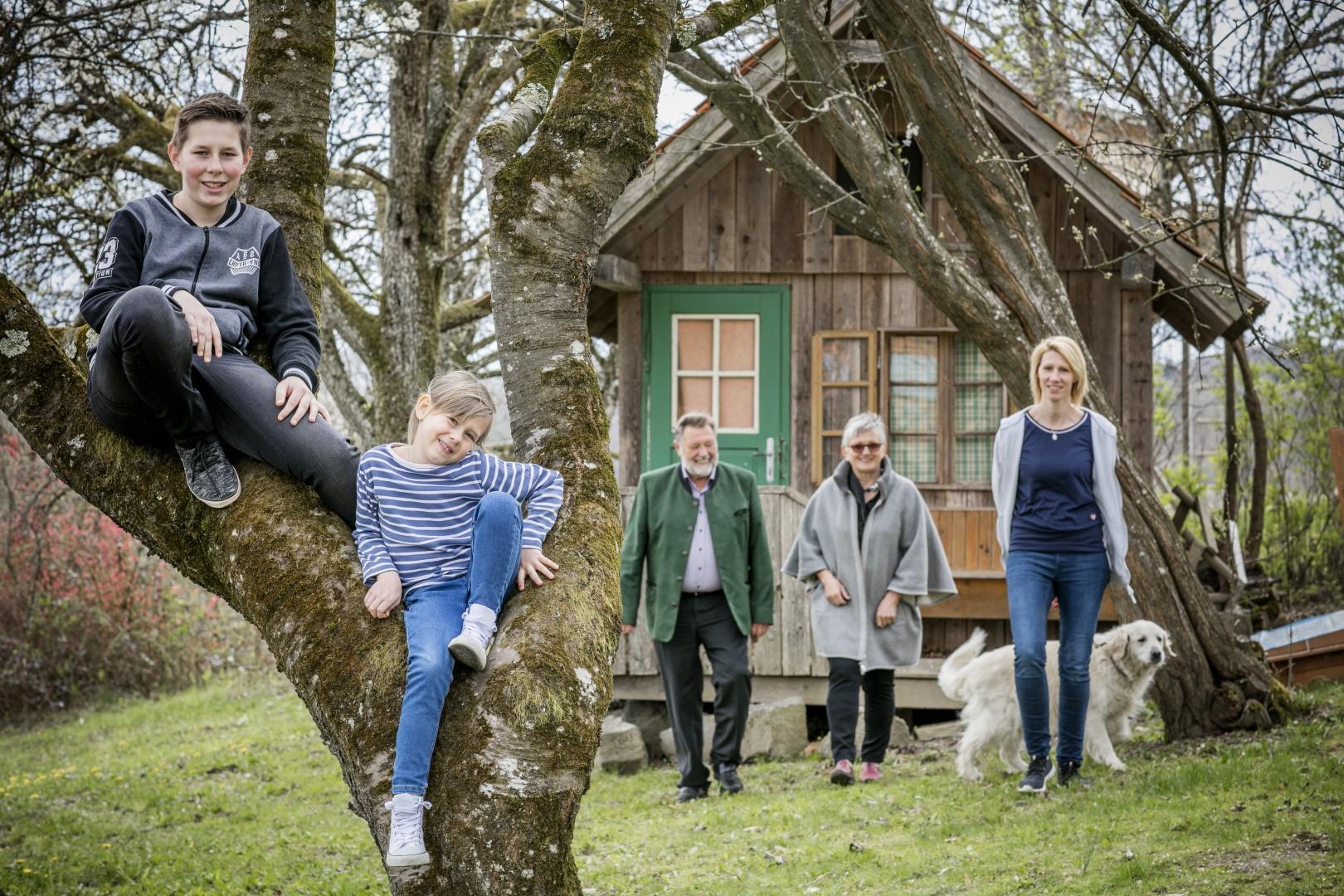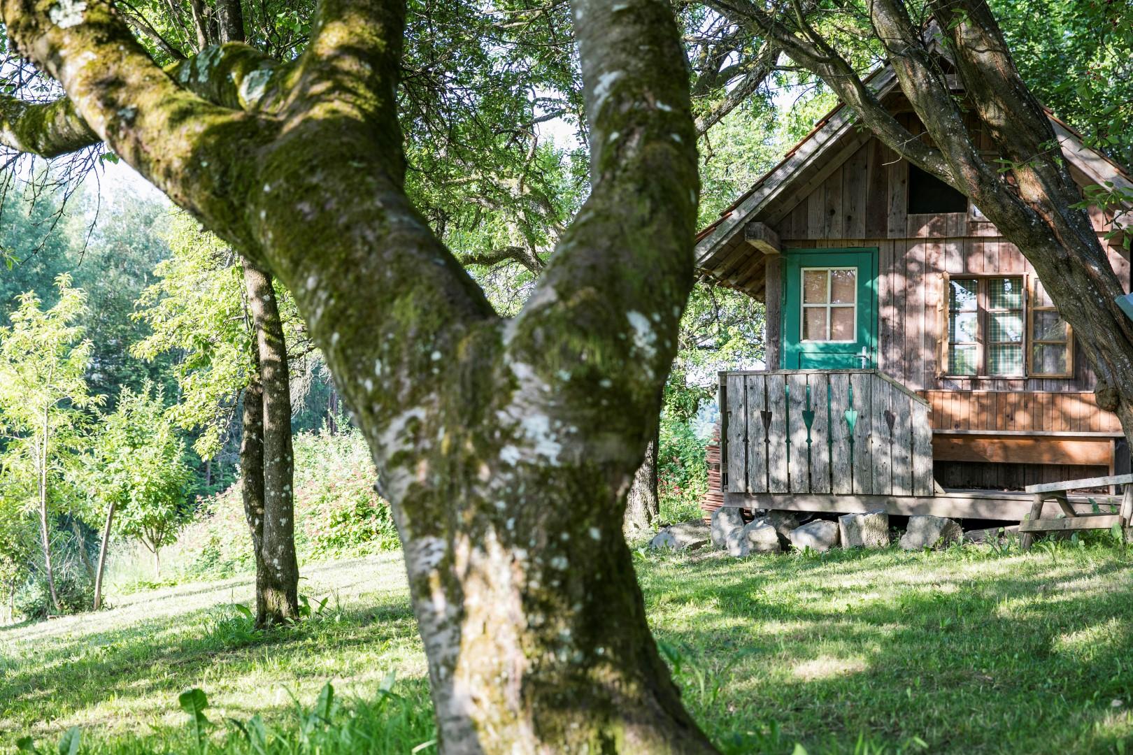 Der angrenzende kleine Wald bietet Entspannung pur beim Waldbaden. Am Waldesrand erfreuen sich Kinder am Trampolin, beim Sandspielen und Schaukeln.