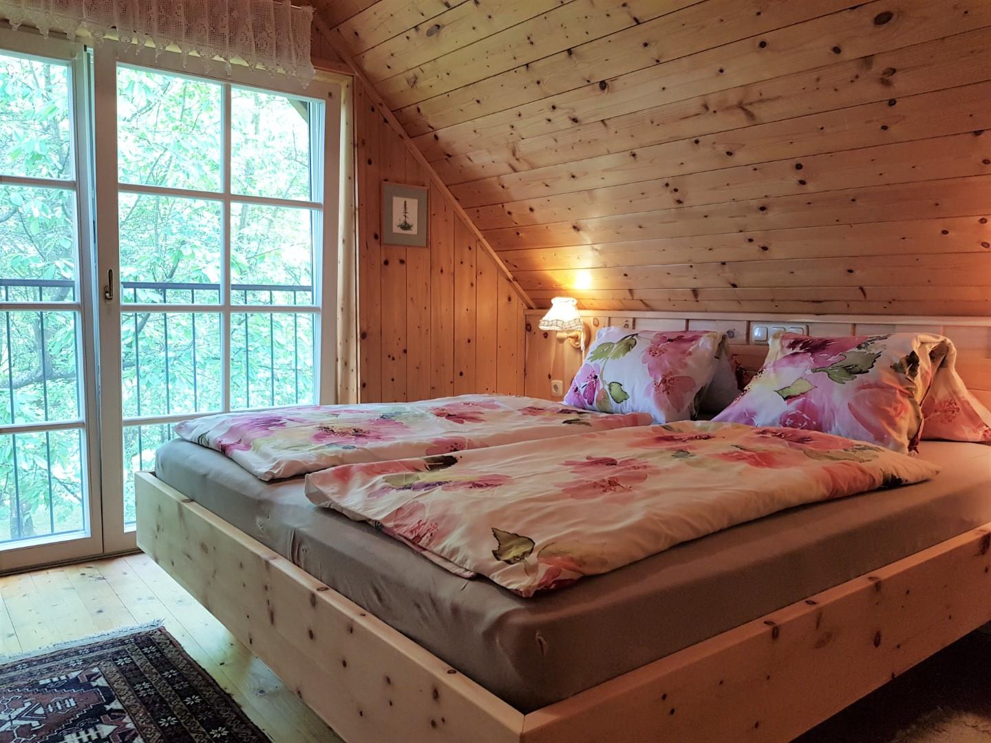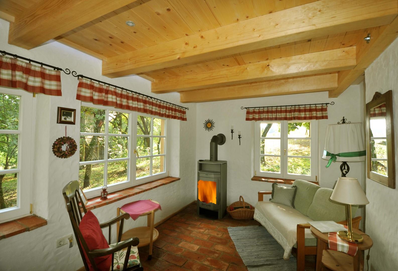 Das Romantikstöckl - ein Ferienhaus bis 3 Personen. Im EG Wohnküche mit anschließender lichtdurchfluteter Veranda und Kaminofen; Bad mit WC und Dusche, Vorraum. Großzügige ostseitige Terrasse, kleine westseitige Terrasse. Im OG Wohnschlafzimmer und anschließend ein Doppelbettzimmer mit wunderbaren Blick in den Obstgarten.
