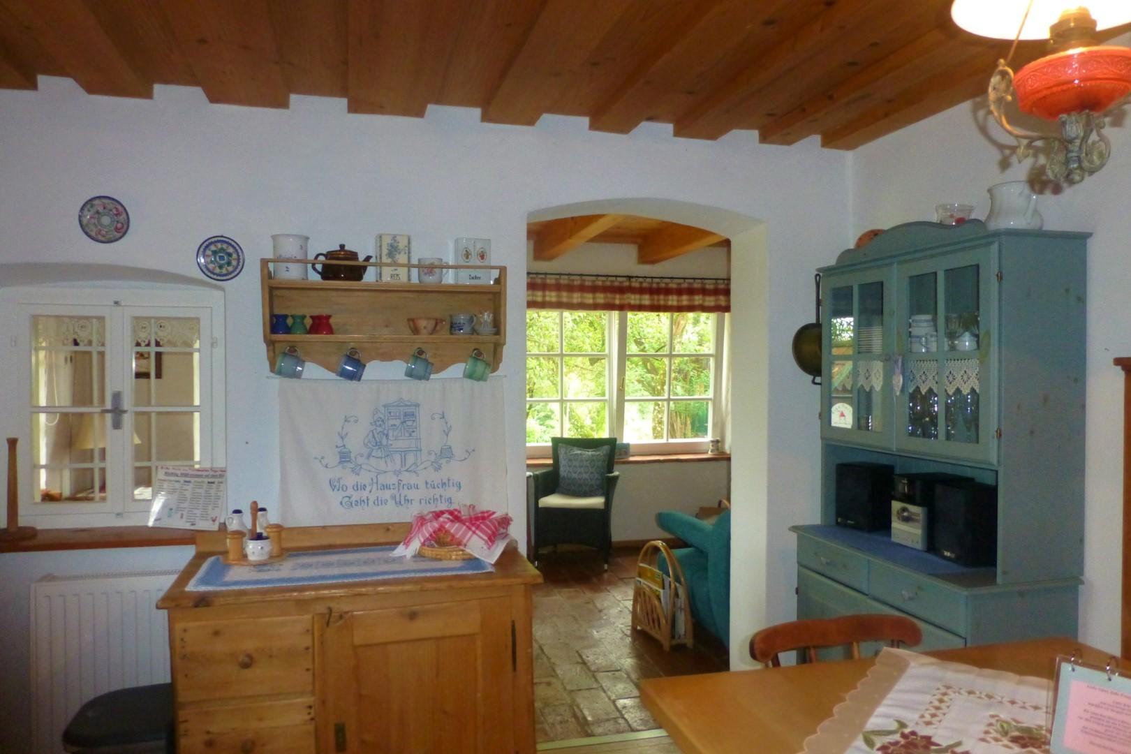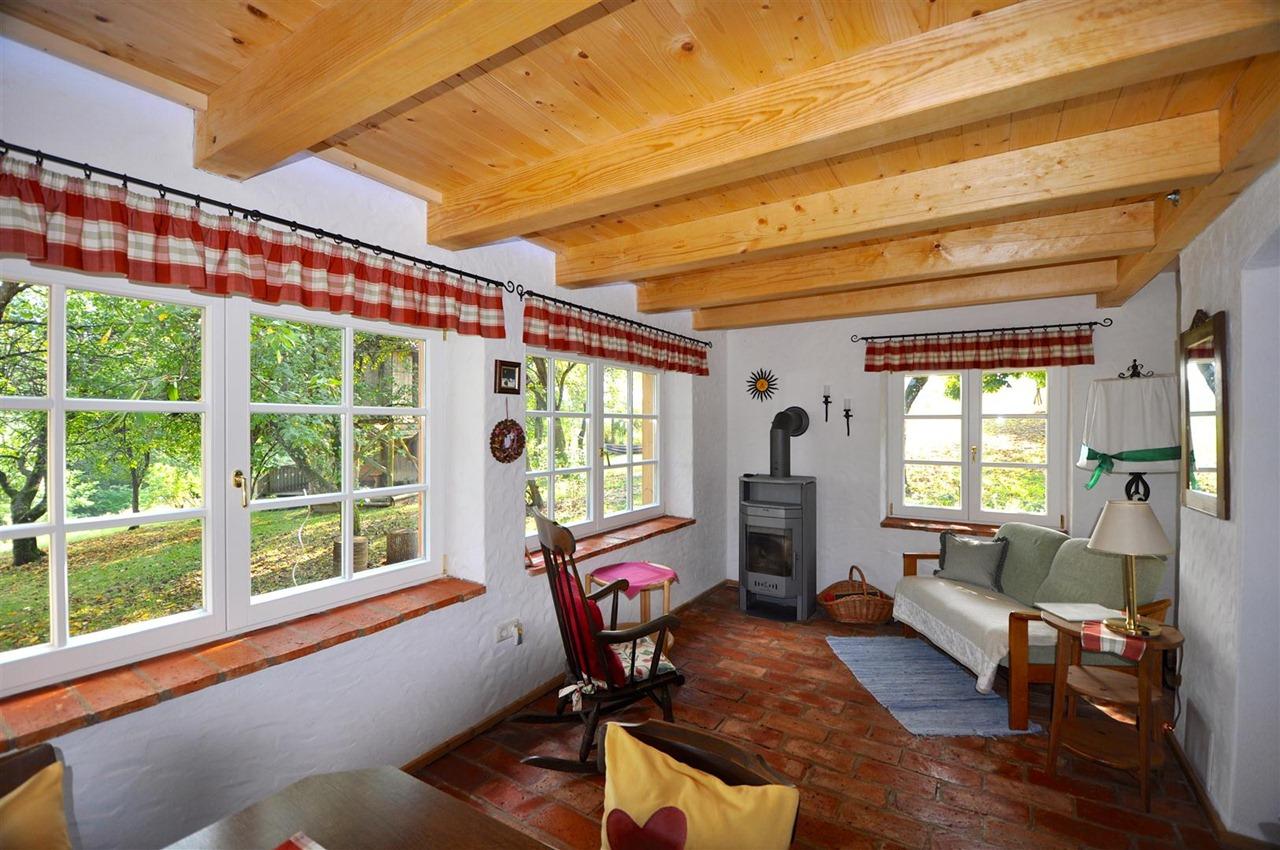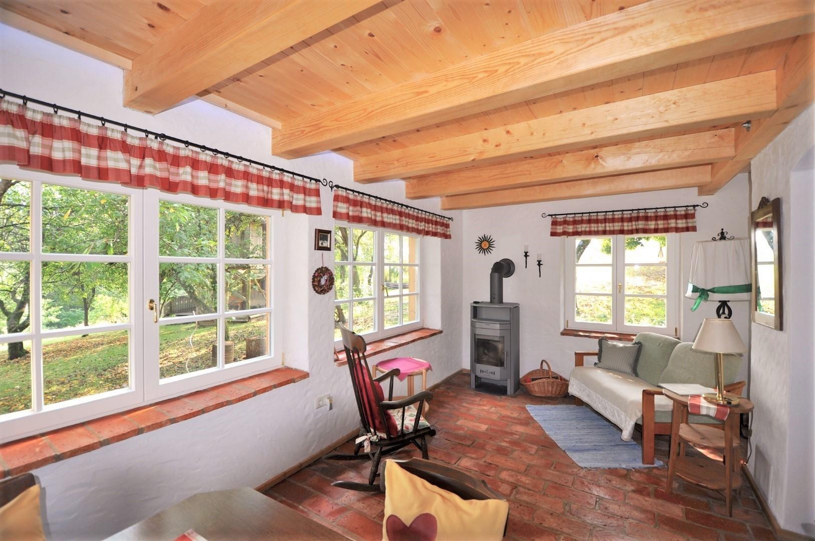 Das Romantikstöckl - ein Ferienhaus bis 3 Personen. Im EG Wohnküche mit anschließender lichtdurchfluteter Veranda und Kaminofen; Bad mit WC und Dusche, Vorraum. Großzügige ostseitige Terrasse, kleine westseitige Terrasse. Im OG Wohnschlafzimmer und anschließend ein Doppelbettzimmer mit wunderbaren Blick in den Obstgarten.