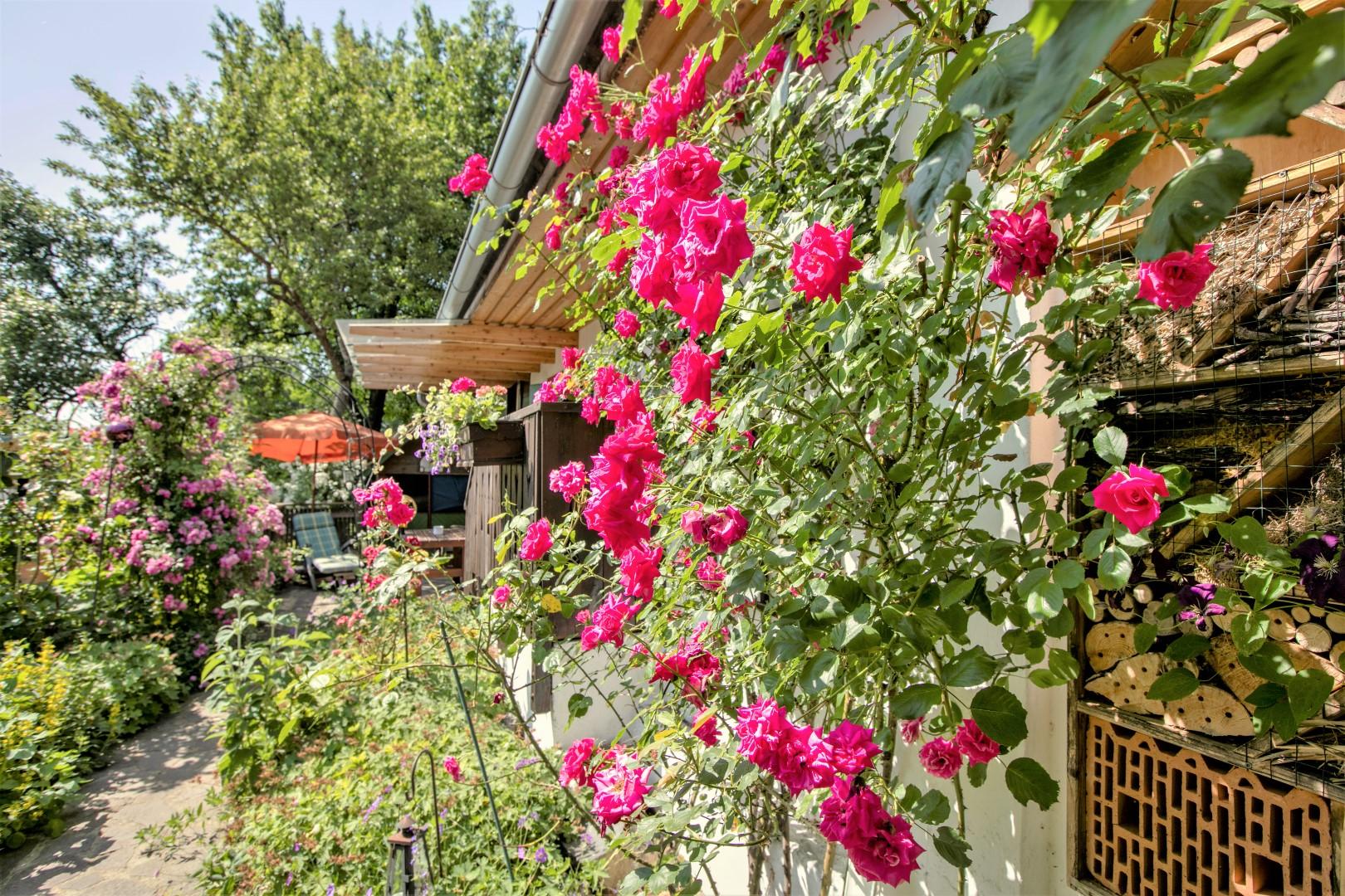 In unserem großen Naturgarten blühen unzählige Blumen wie Rosen und Sträucher, die dazu einladen, durch das grüne Paradies zu schlendern und die Seele baumeln zu lassen. Viele Sonnen- und Schattenplätze genießen Sie im Liegestuhl oder in der Hängematte.