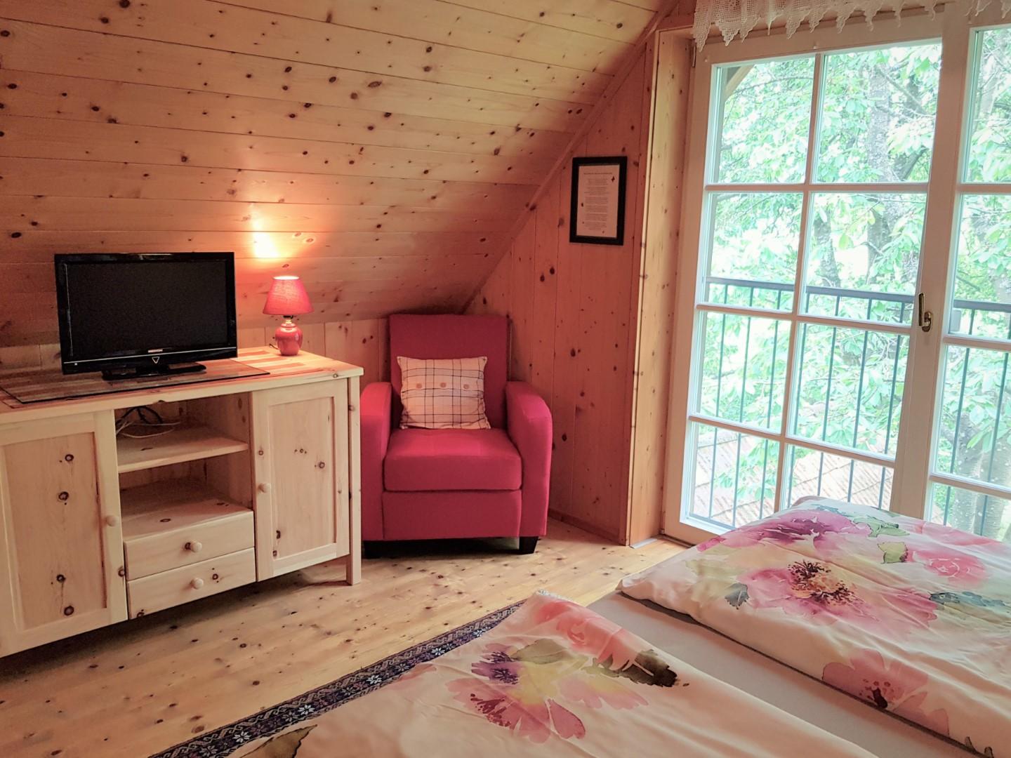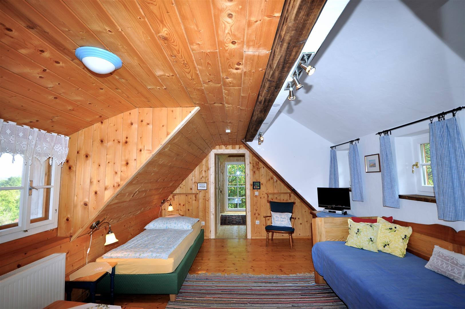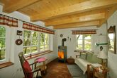 Das Romantikstöckl - ein Ferienhaus bis 3 Personen. Im EG Wohnküche mit anschließender lichtdurchfluteter Veranda und Kaminofen; Bad mit WC und Dusche, Vorraum. Großzügige ostseitige Terrasse, kleine westseitige Terrasse. Im OG Wohnschlafzimmer und anschließend ein Doppelbettzimmer mit wunderbaren Blick in den Obstgarten.