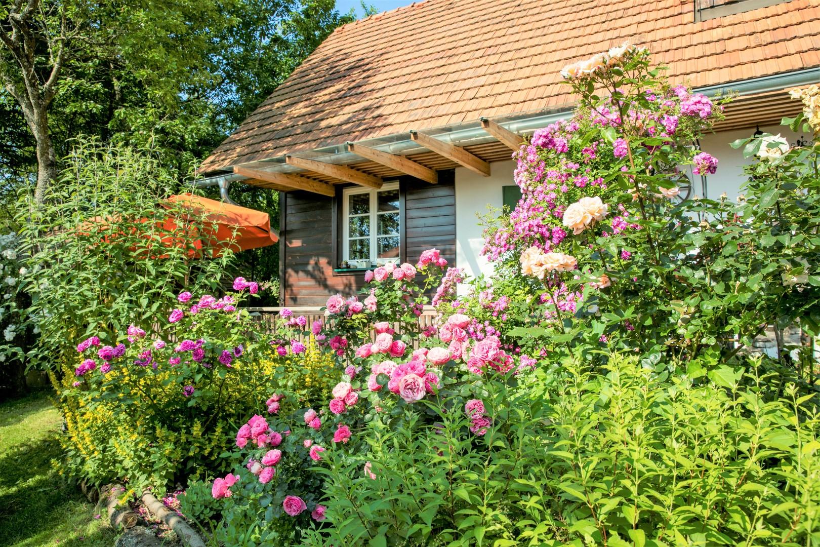 In unserem großen Naturgarten blühen unzählige Blumen wie Rosen und Sträucher, die dazu einladen, durch das grüne Paradies zu schlendern und die Seele baumeln zu lassen. Viele Sonnen- und Schattenplätze genießen Sie im Liegestuhl oder in der Hängematte.