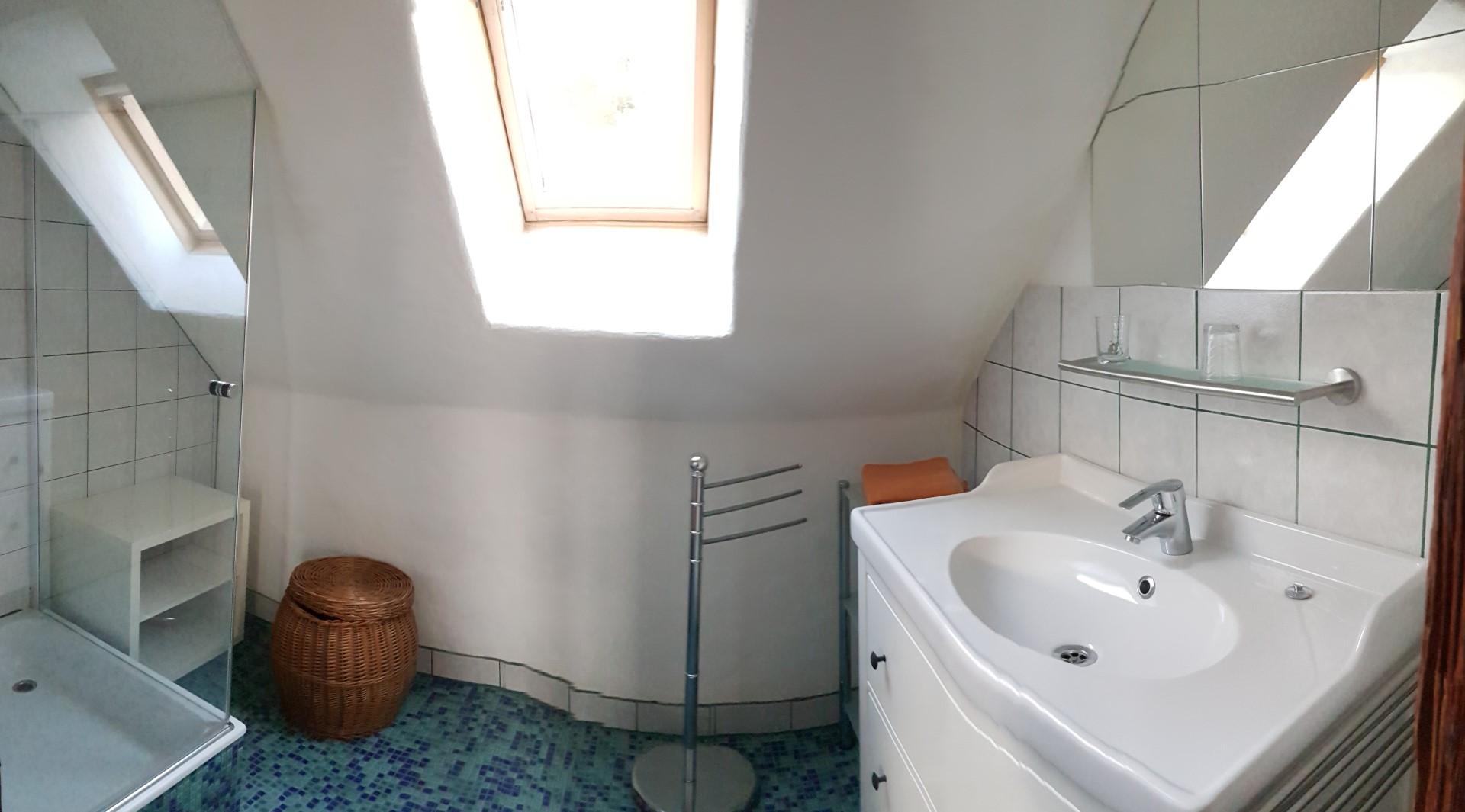*Ein separates WC. Eine Dusche und ein Waschbecken.