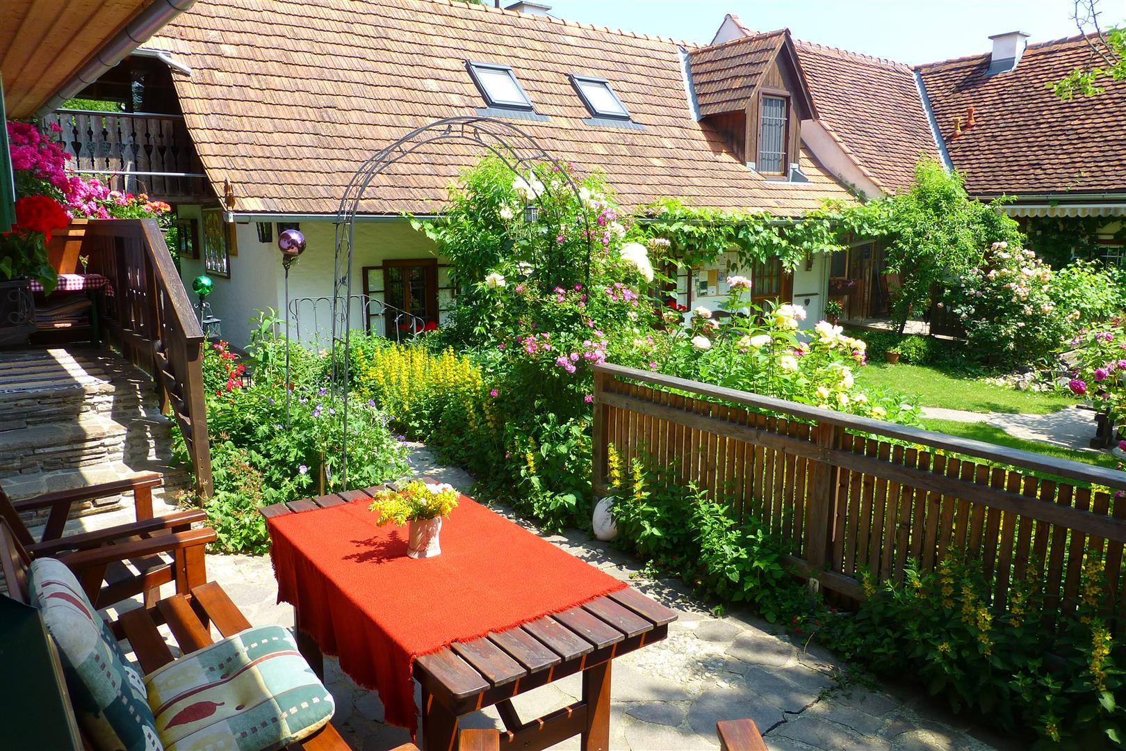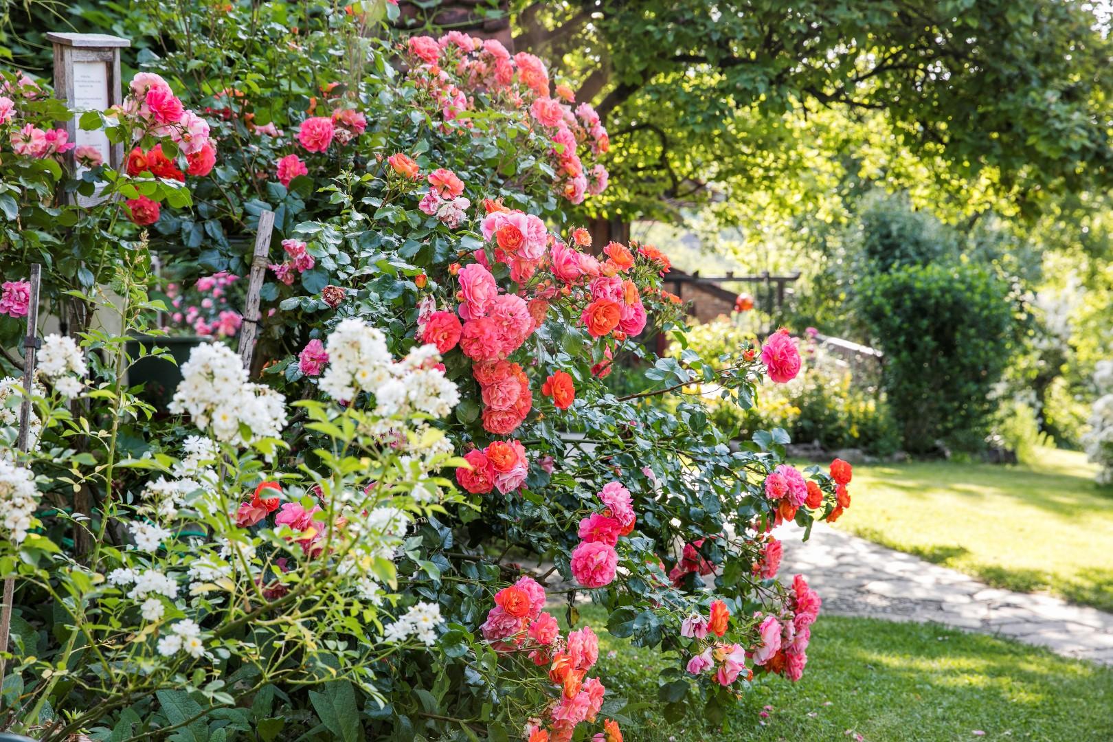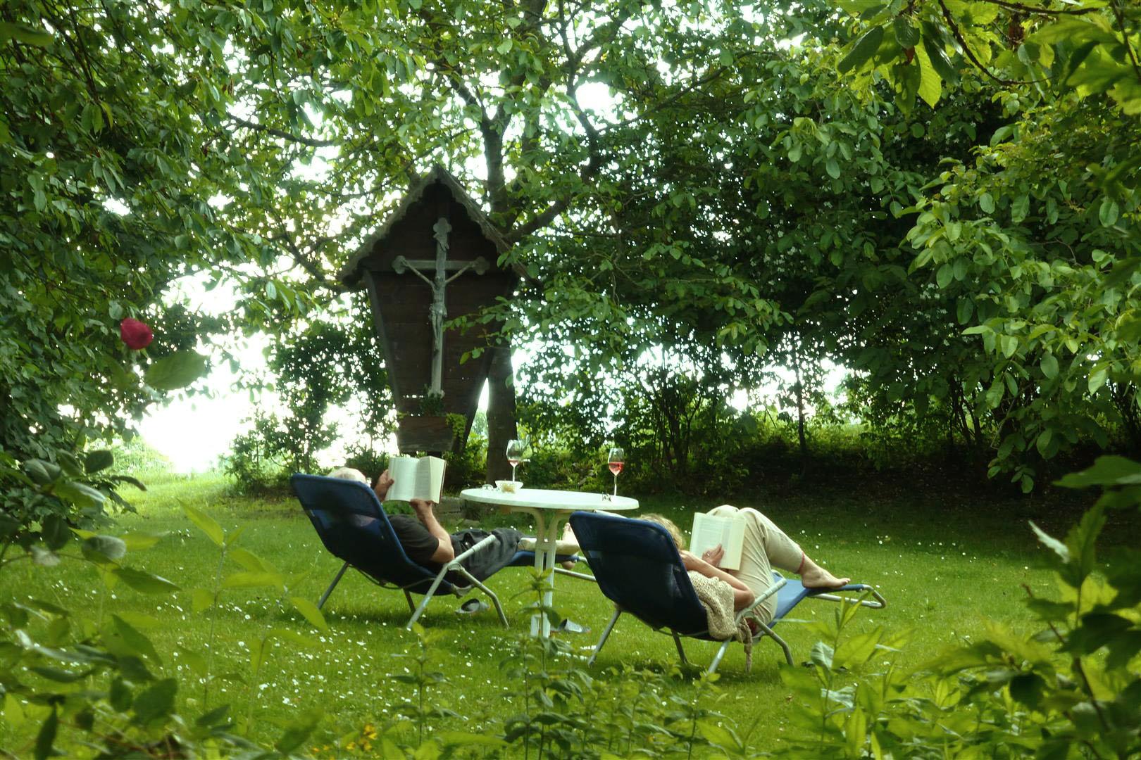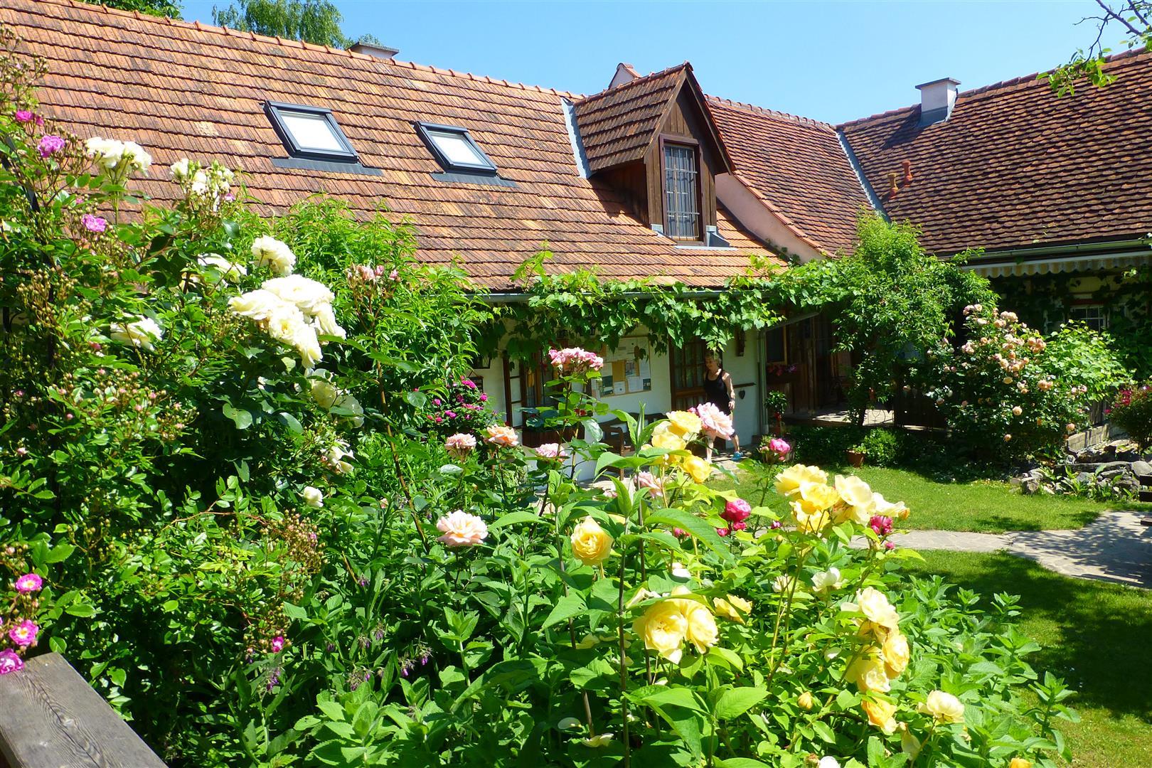 In unserem großen Naturgarten blühen unzählige Blumen wie Rosen und Sträucher, die dazu einladen, durch das grüne Paradies zu schlendern und die Seele baumeln zu lassen. Viele Sonnen- und Schattenplätze genießen Sie im Liegestuhl oder in der Hängematte.