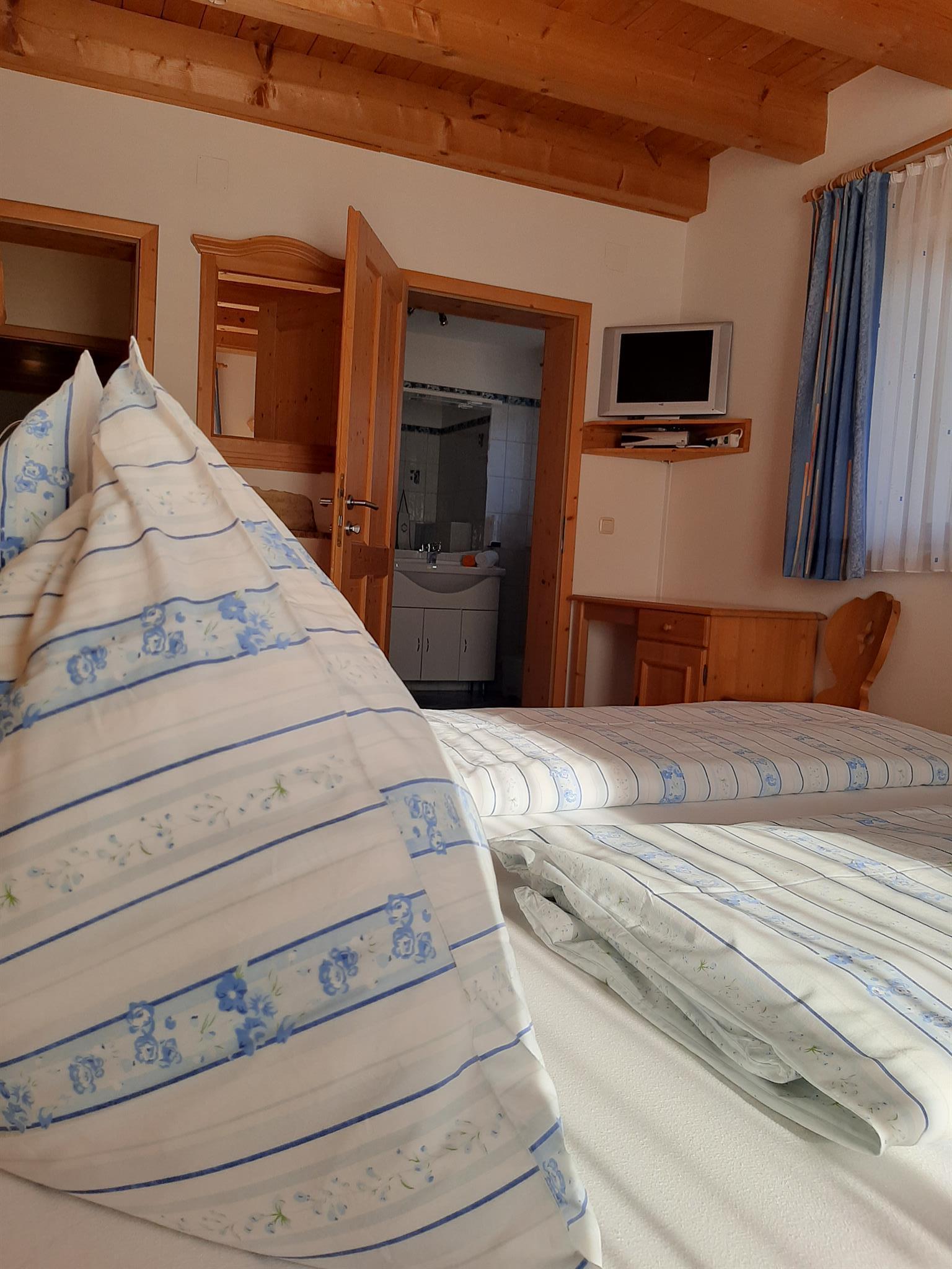 In unserer Ferienwohnung „ Sonnengruß“ werden die Gäste von den Strahlen der Sonne geweckt! Die geräumigen mit hellen Vollholz-möbeln ausgestatteten Zimmer laden zum gemütlichen Zusammensitzen bei einem Gläschen sterischen Wein ein. Die Luxuriös uns sehr familiär ausgestattete Wohnung beinhaltet bis zu 2- 3 Schlafzimmer bis zu 3 Badezimmer und eine Küche mit Essecke. Auf einer wunderschönen Terasse können Sie Ihr Frühstück genießen. In allen Zimmern gibt es einen Fernseher mit Sat Tv. Im Badezimmer sind reichlich Handtücher und die Betten sind schon bezogen. W- Lan ist für alle frei