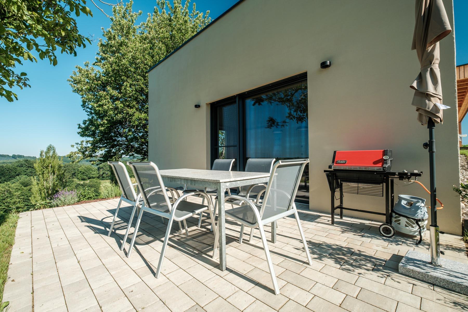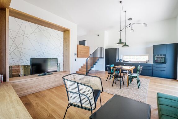 Das idyllische Häuschen wurde 2020/21 komplett um-, ausgebaut und renoviert, modern ausgestattet und mit viel Liebe zum Detail stilvoll eingerichtet. Auf 110 m² Wohnfläche finden bis zu 6 Personen Platz. Mit zwei Schlafzimmern, einer Schlafcouch im Wohnzimmer (inkl. TV), zwei Bädern, zwei Toiletten, einer voll ausgestatteten Küche und einer Sauna mit Ausblick bietet es flexiblen Raum für Familien, ausgelassene Ausflüge mit Freunden oder einfach ein großzügiges Wohlfühlreich für Paare. Nicht nur die vielen Glasfronten und die Sauna gewähren atemberaubende Ausblicke in die südoststeirische Hügellandschaft, auch die sonnigen Terrassen und der gemütliche Garten laden zum Verweilen im Grünen ein. Weiteren Komfort bieten ein Carport, freies WLAN, die Zirbensauna und der atmungsaktive Lehmputz, der für ein gesundes und besonders angenehmes Raumklima sorgt.