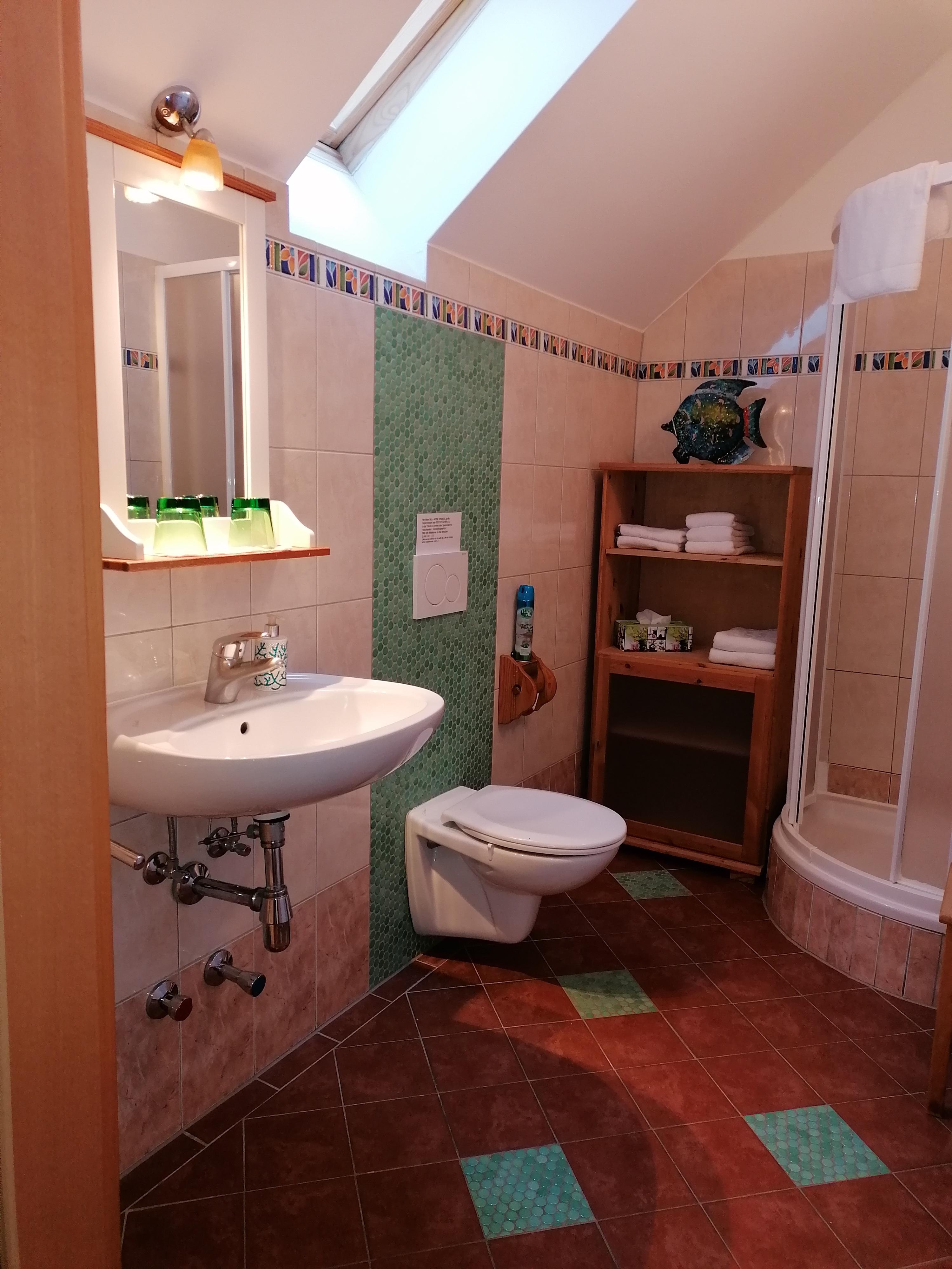 Individuell ausgestattete und liebevoll gestaltete Themenzimmer mit Balkon. Gartenblick. Grünruhelage, Badezimmer mit Fenster, Vorraum