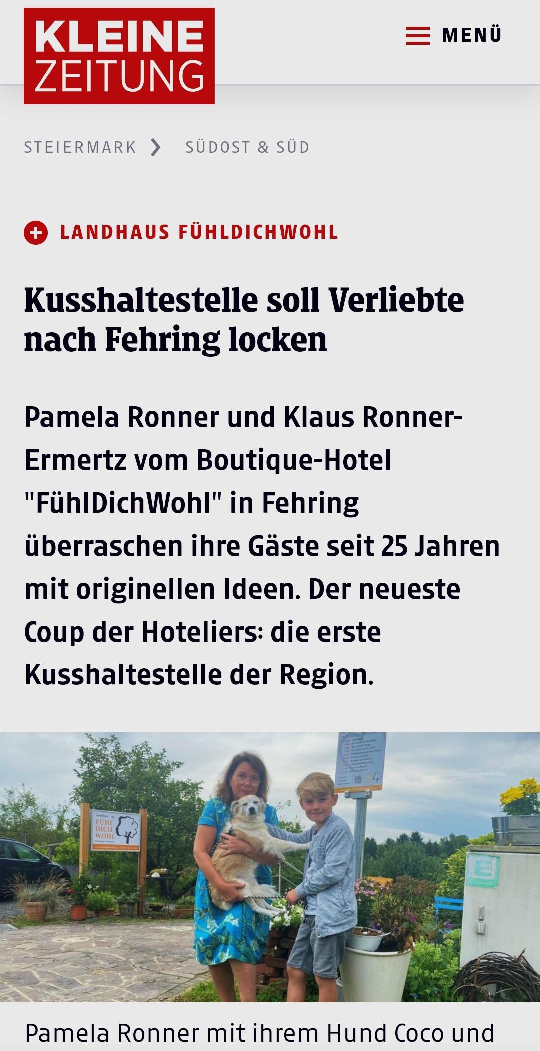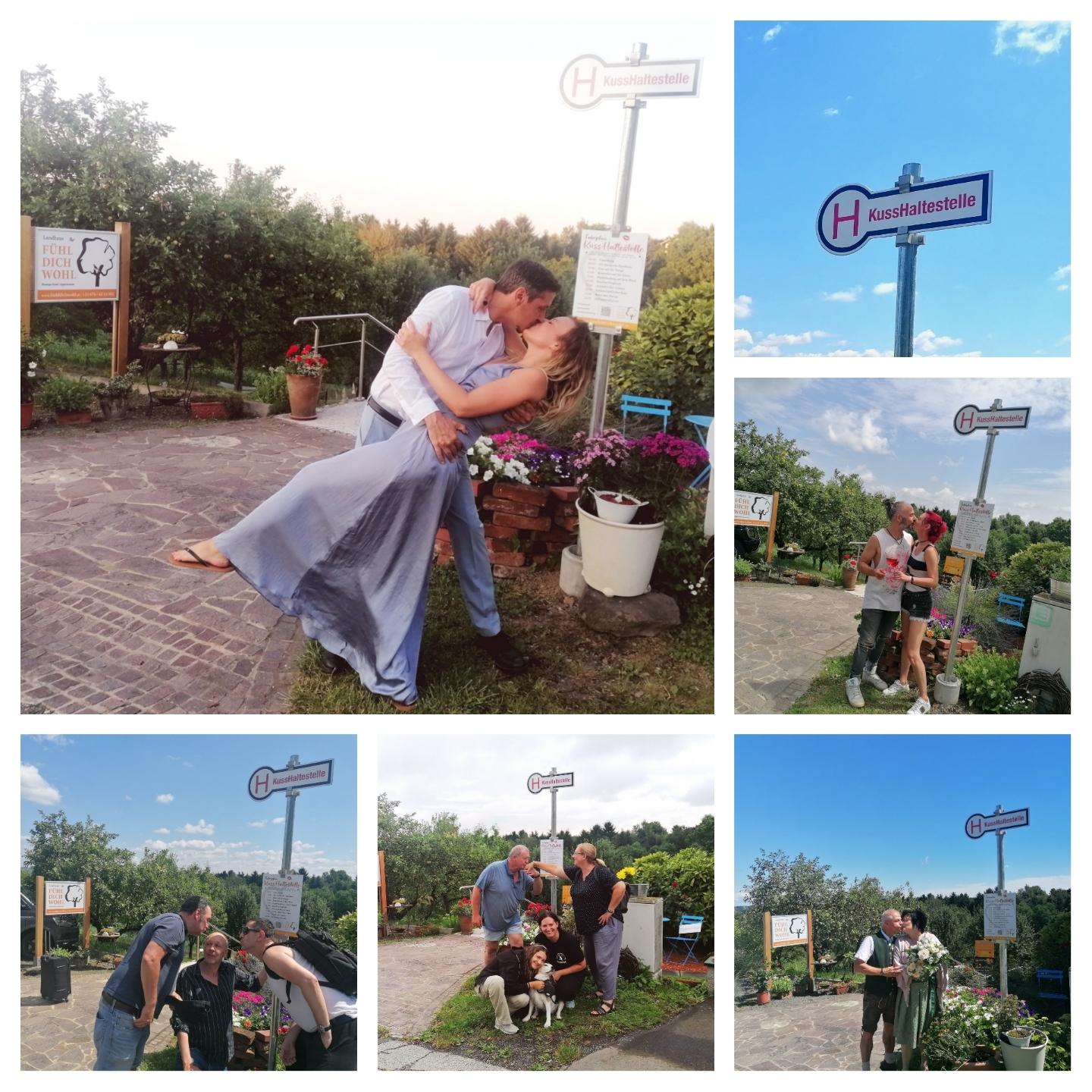 Unser beliebter Fotopoint : 1.und einzige (?) KUSSHALTESTELLE vor dem Haus