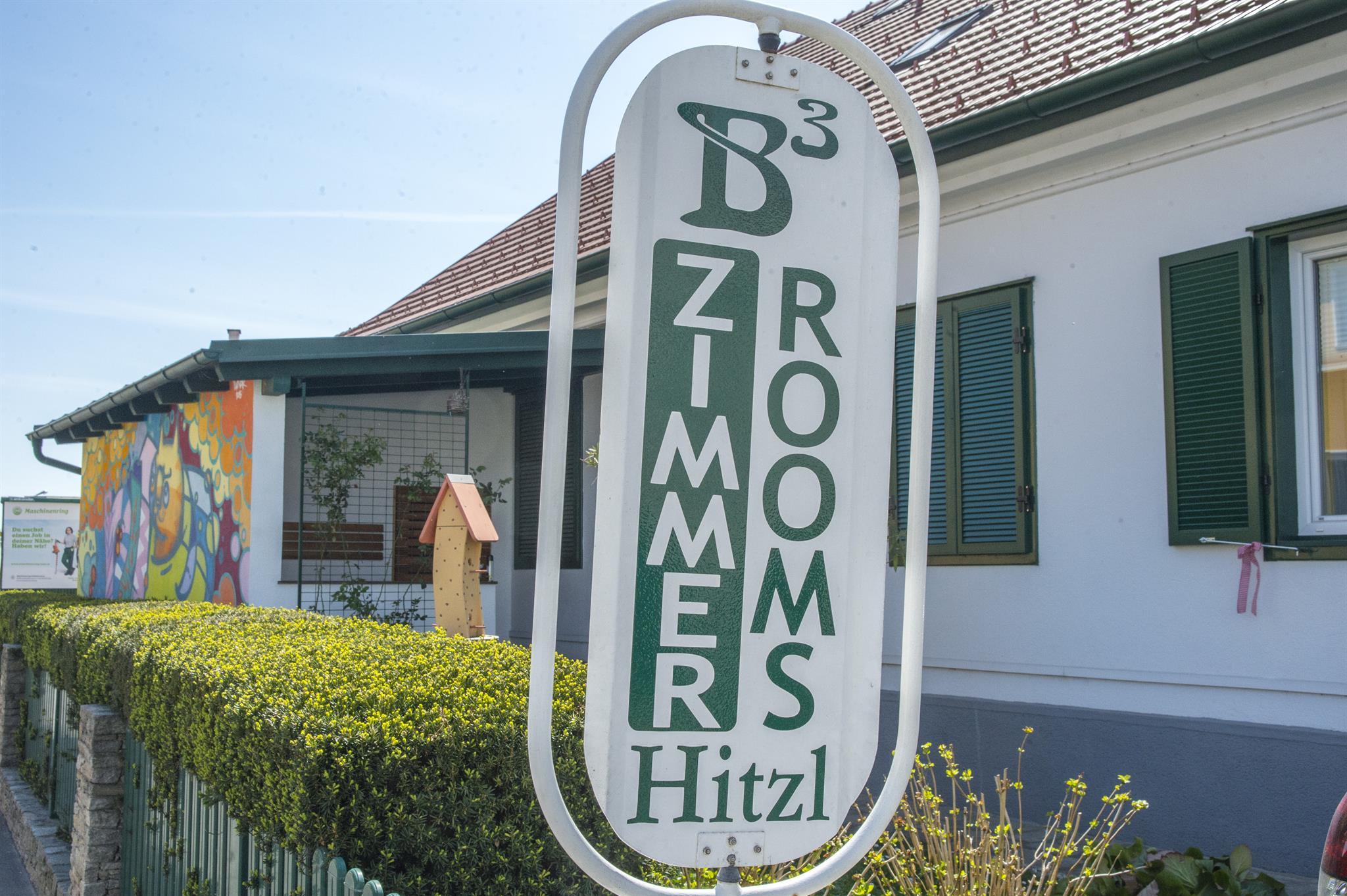Übrigens: Im Herbst 2015 haben im Rahmen des „Graffiti & Street Art Festival Styria“ auch internationale Graffiti Stars in Barbara’s Bed & Breakfast logiert. Darunter war auch der in Zagreb ansässige Künstler Slaven ‚Lunar‘ Kosanović, der aus der frühen kroatischen Graffiti-Szene hervorgegangen ist und seine Werke weltweit malt, ausstellt und veröffentlicht. Lunar hat auch die Hauswände mit kräftigen Farben gestaltet und seine Katze Jinx mit abgebildet. Die andauernd positive Resonanz von Gästen freut uns sehr – und wir sind äußerst stolz über dieses beliebte Fotomotiv.