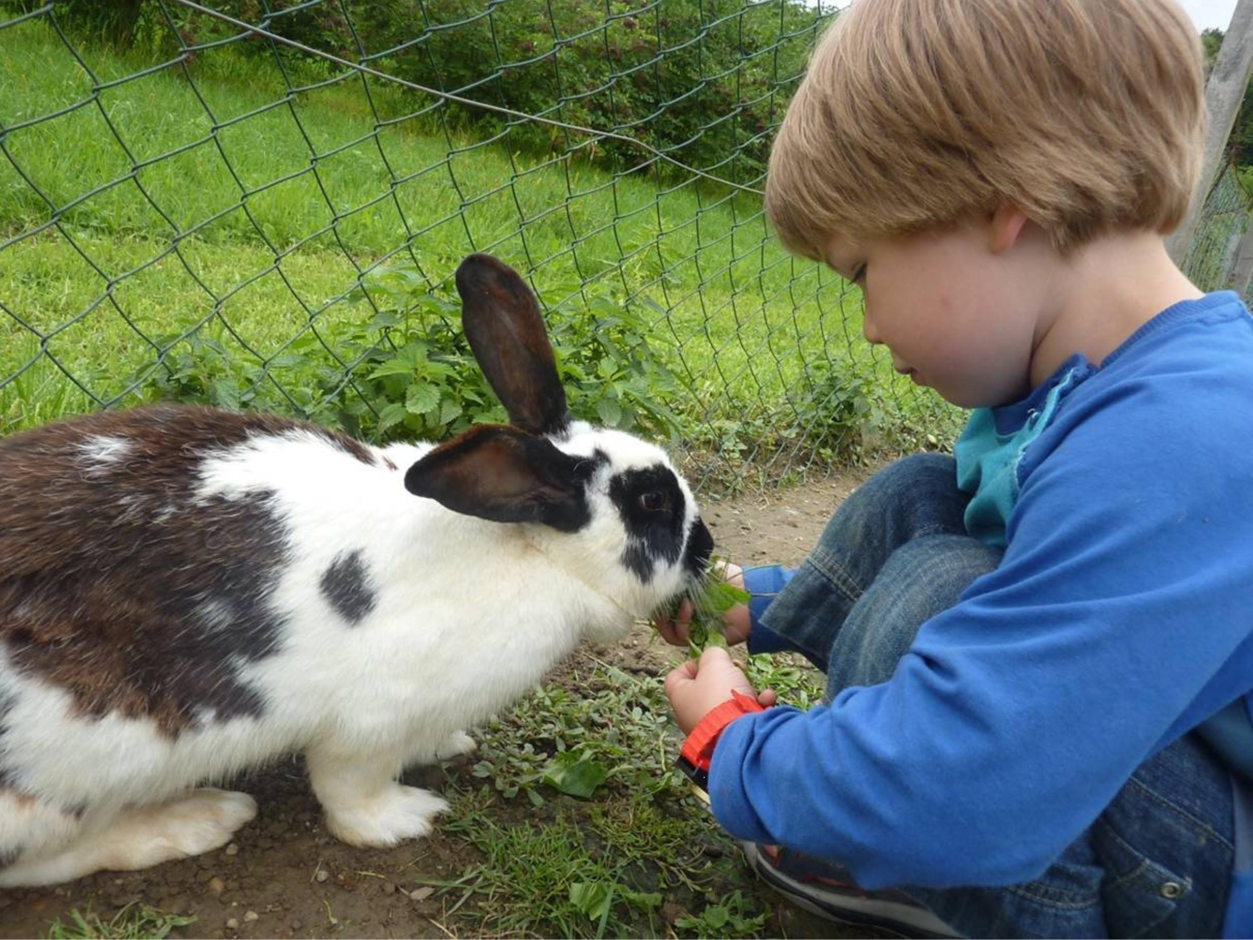 Gleich angrenzend können Sie unsere Ziegen, Hasen und beobachten, streicheln und füttern.