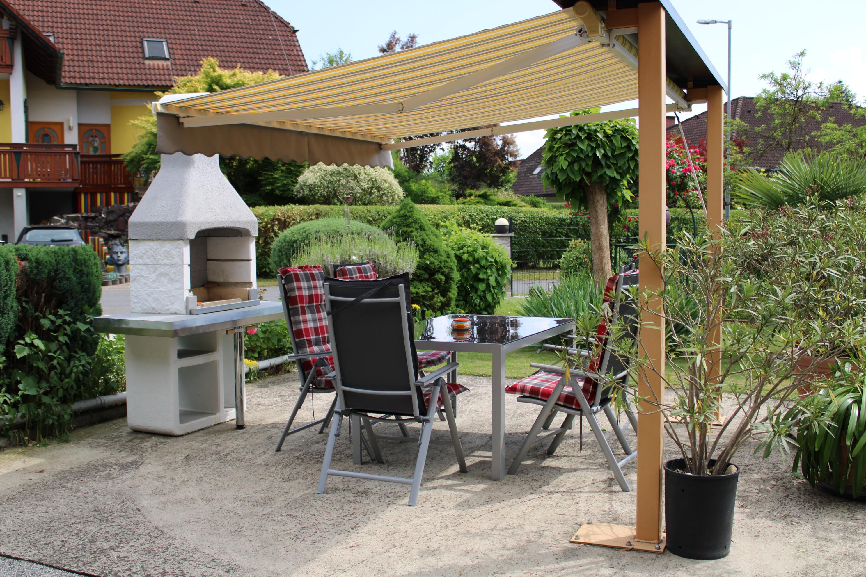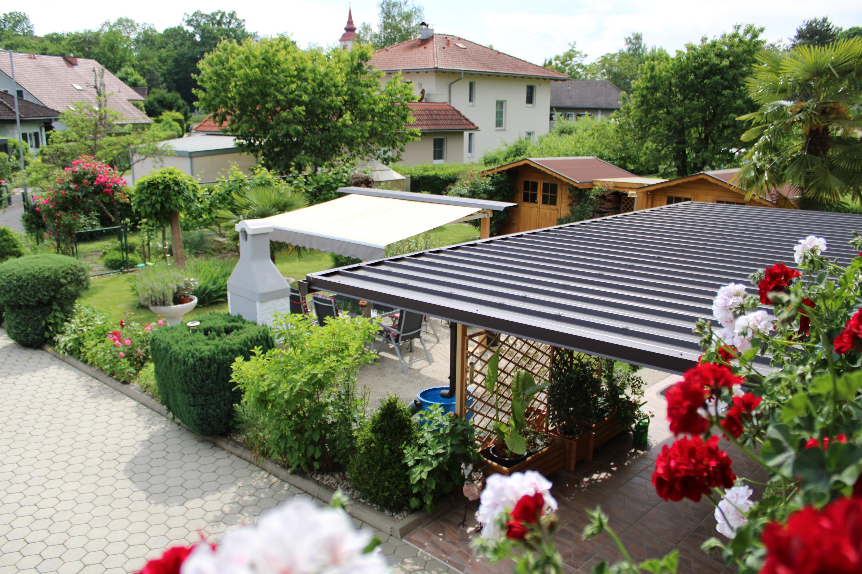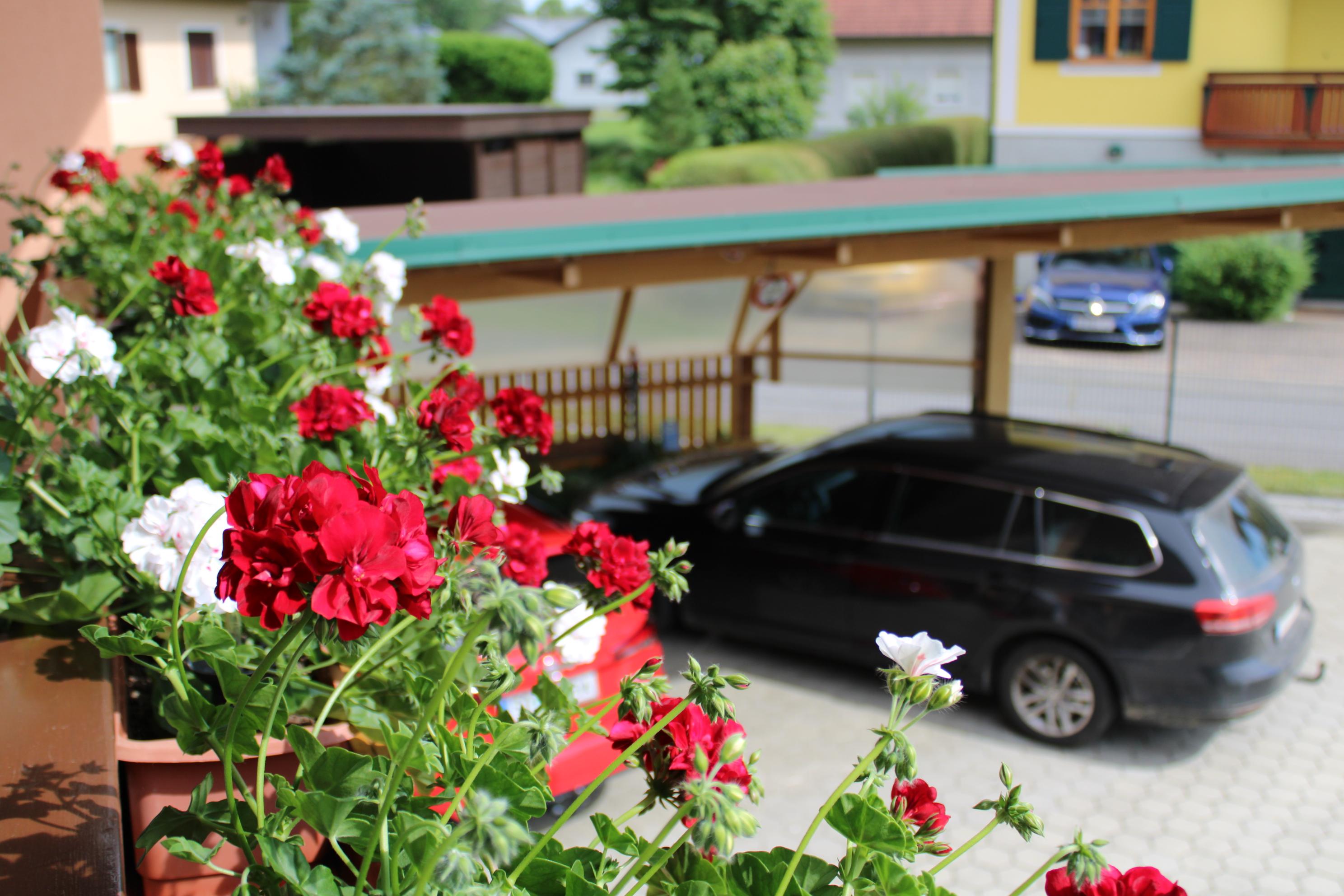 Sitzgelegenheit und Aufenthalt im Garten möglich. Raucherecke auf dem Balkon. Überdachtes Carport.
