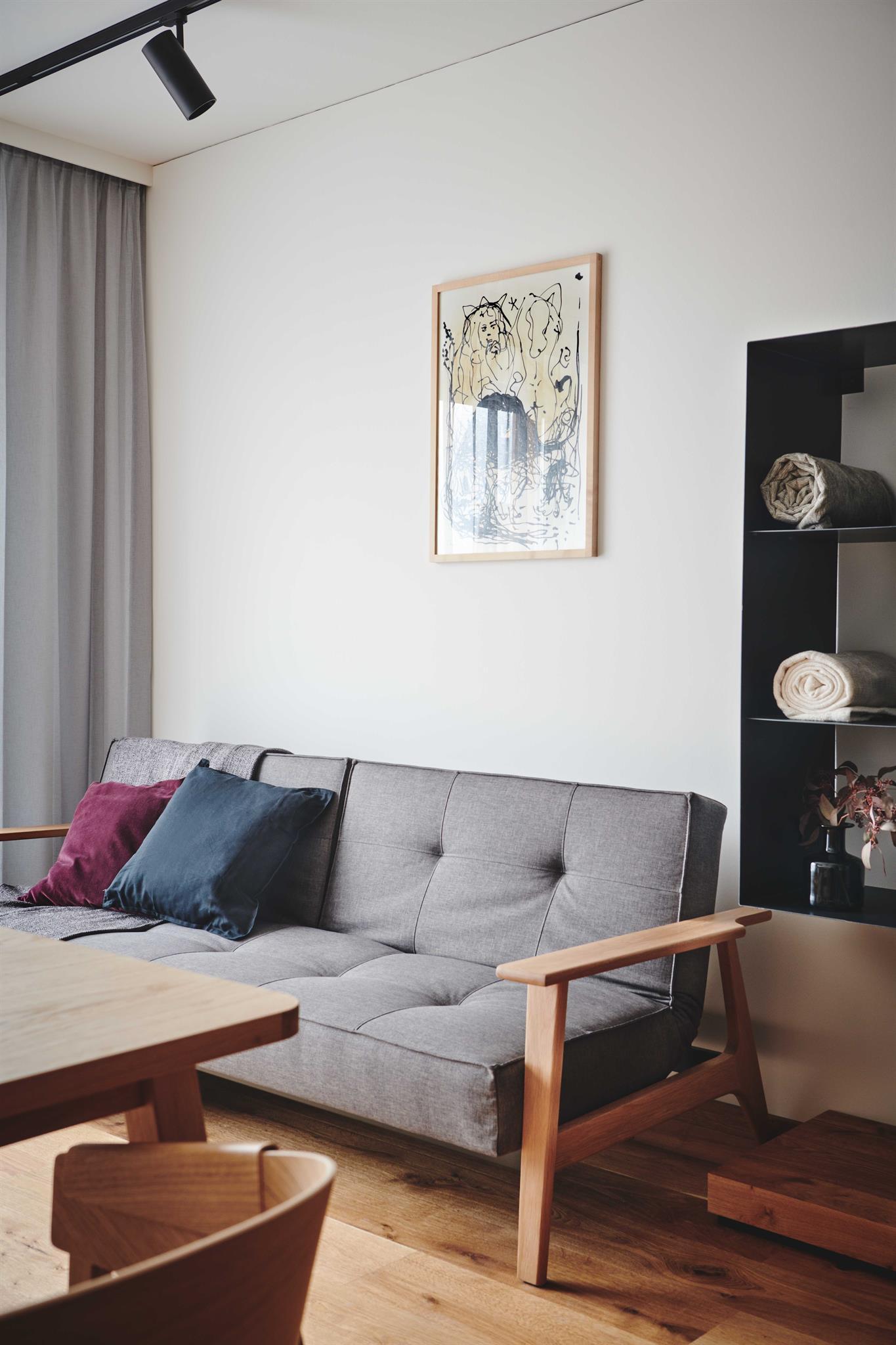 Apartment ca. 35 m2, mit Kitchenette, großzügiges Badezimmer, UHD Fernseher, Free Wifi, Wohnbereich, Tresor, Kühlschrank, ausziehbares Sofa, Arbeitsplatz, Boxspringbett