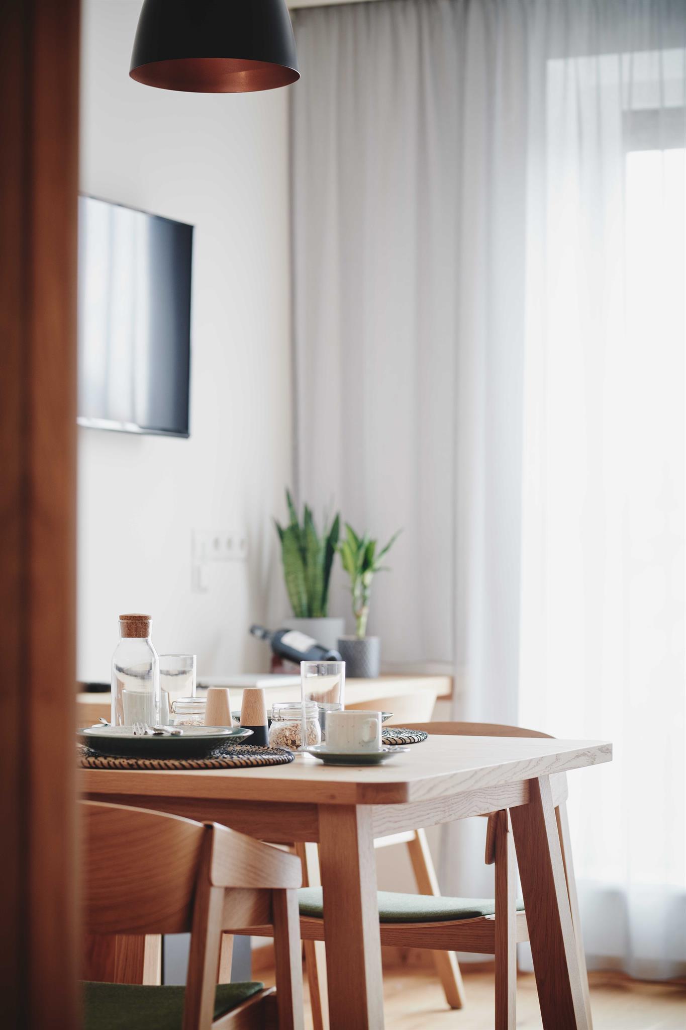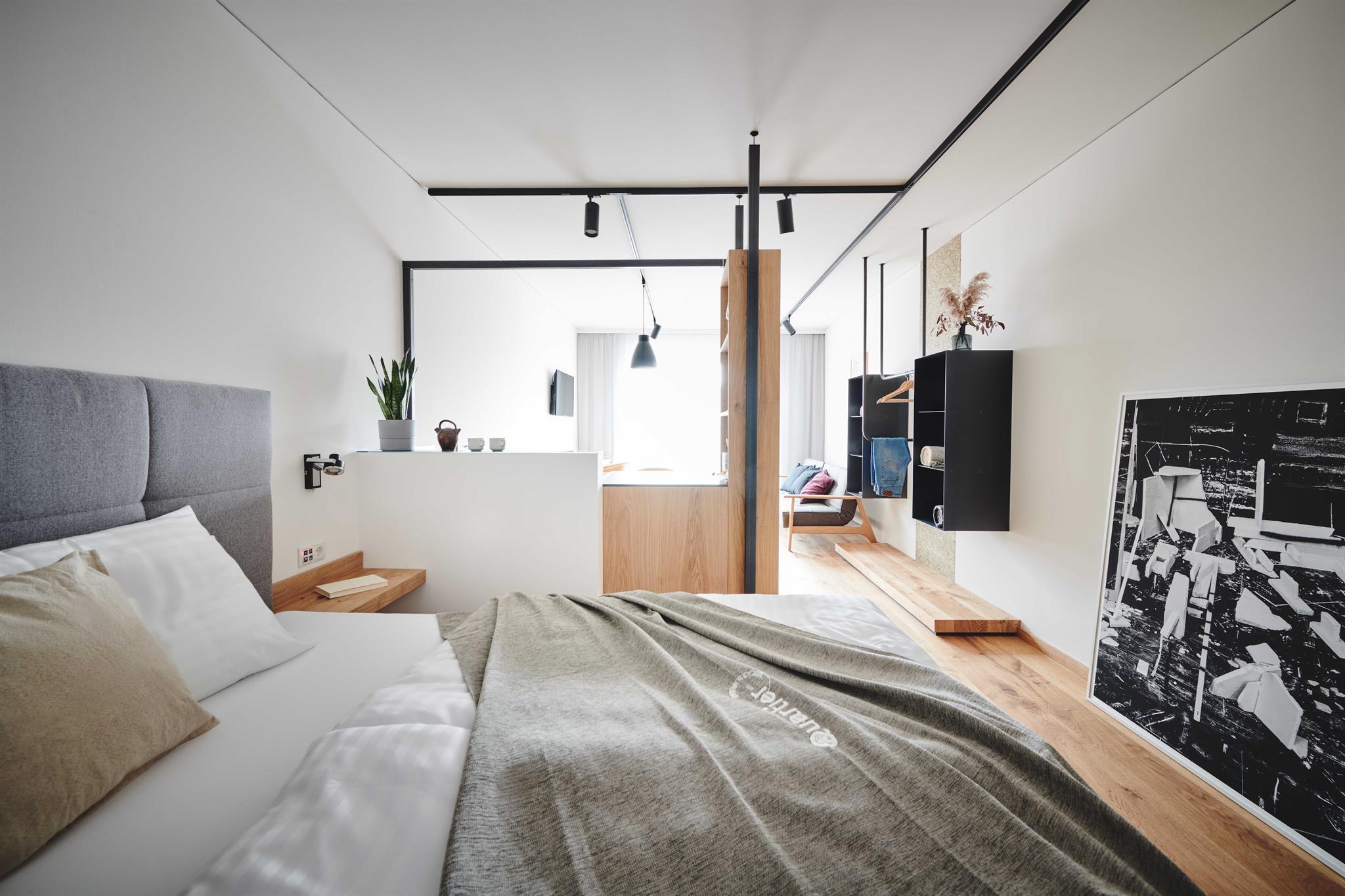 Das Quartier am Bauernstadl ist aber alles andere als ein klassisches Hotel - Gastgeber David Trummer nennt es Aparthotel. Es gibt einen Check-in-Automaten; Frühstücks- oder Jausenkörbe werden vom Bauernstadl zusammengestellt und direkt ans Apartment gebracht. Bei Wünschen oder Fragen steht das Bauernstadl-Team jederzeit zur Verfügung. In den 35 Quadratmeter großen Apartments stehen eine ausgestattete Küchenecke (Kitchenette), hochwertige Design-Möbel und Boxspringbetten in Überlänge zur Verfügung.