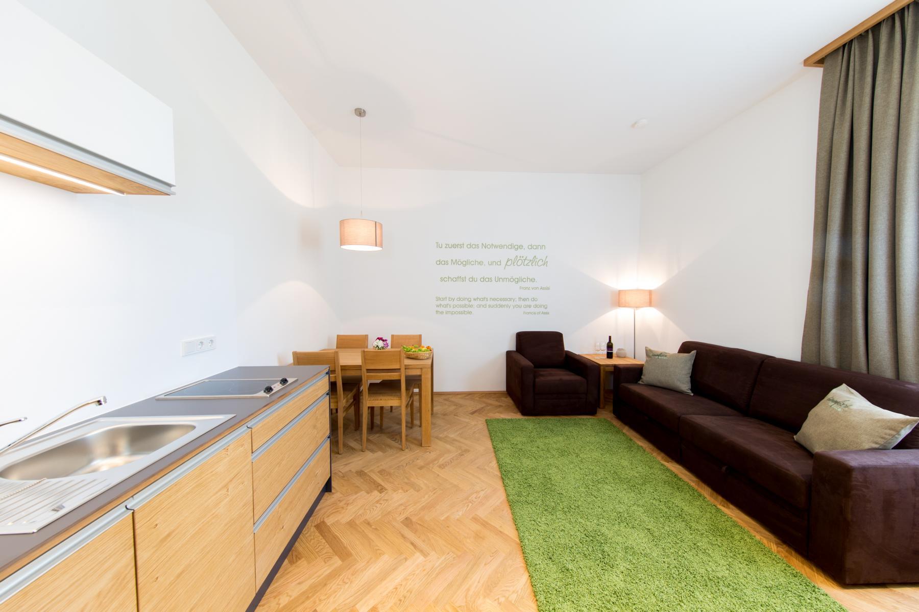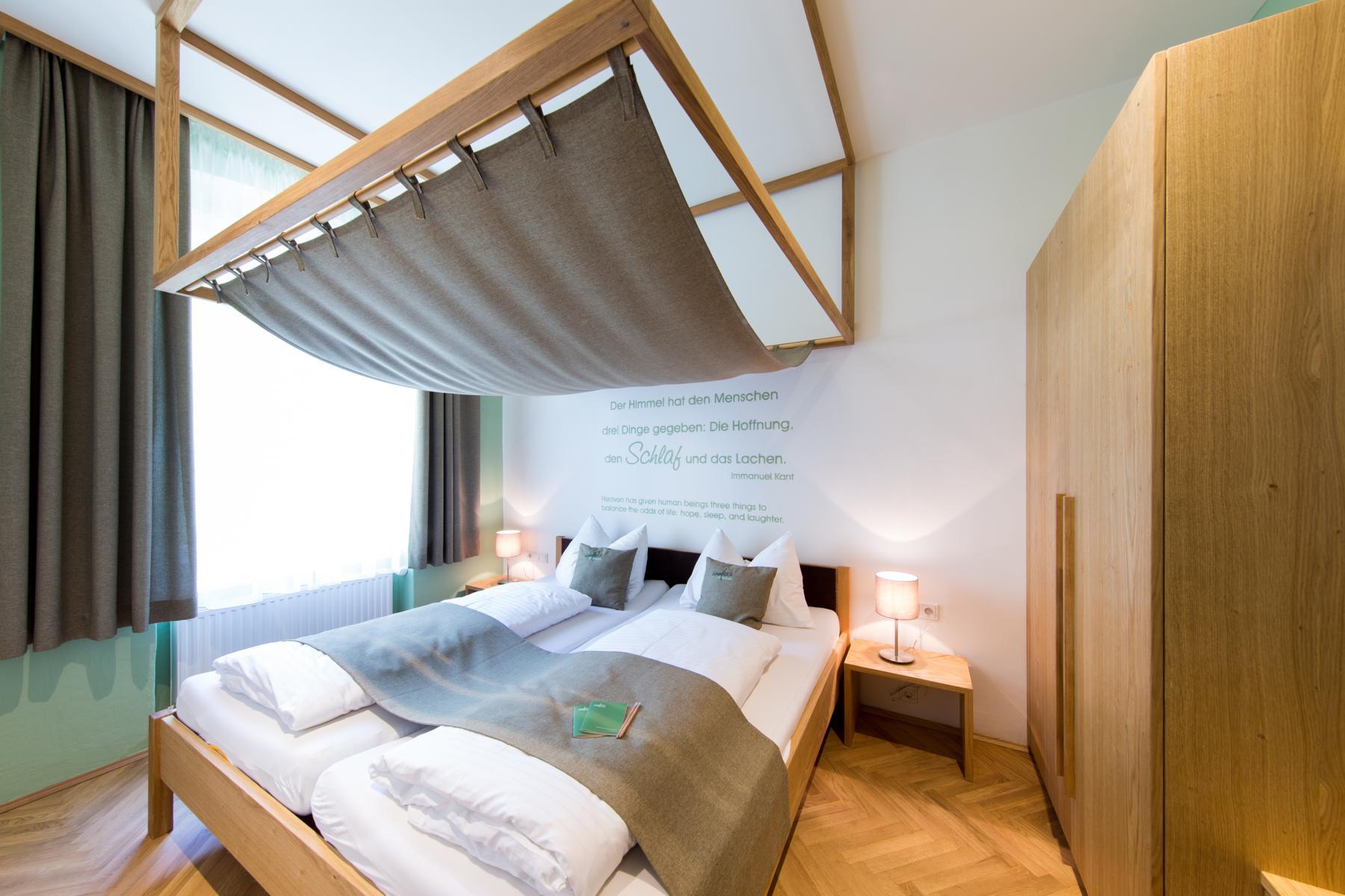 Nach einem behutsamen Umbau und einer Sanierung des Hauses stehen Ihnen seit Ende Mai 2015 vier Appartements im Obergeschoß für eine Auszeit zur Verfügung. Wie in all unseren Häusern wurde auch hier viel Augenmerk auf natürliche Materialien und eine angenehme Wohnatmosphäre gelegt. Zentrales Element aller Appartements sind die Himmelbetten, die teilweise eine überraschende Ausführung aufweisen. Besonderes Highlight ist das Appartement Hl. Dreifaltigkeit, das einen direkten Blick aus dem Wohnzimmer auf den Altar der angrenzenden Kirche ermöglicht.