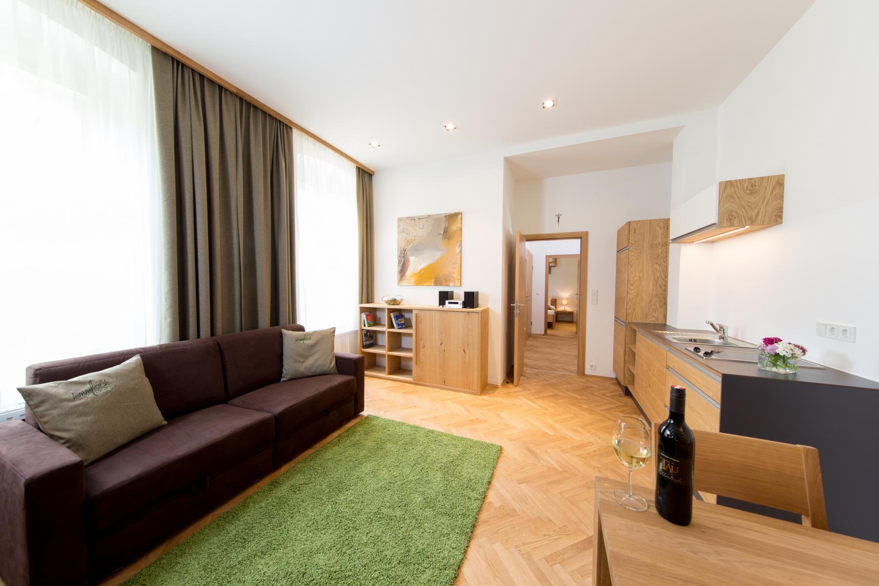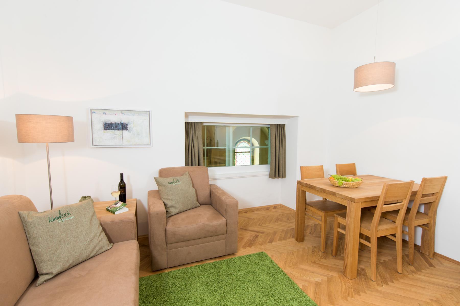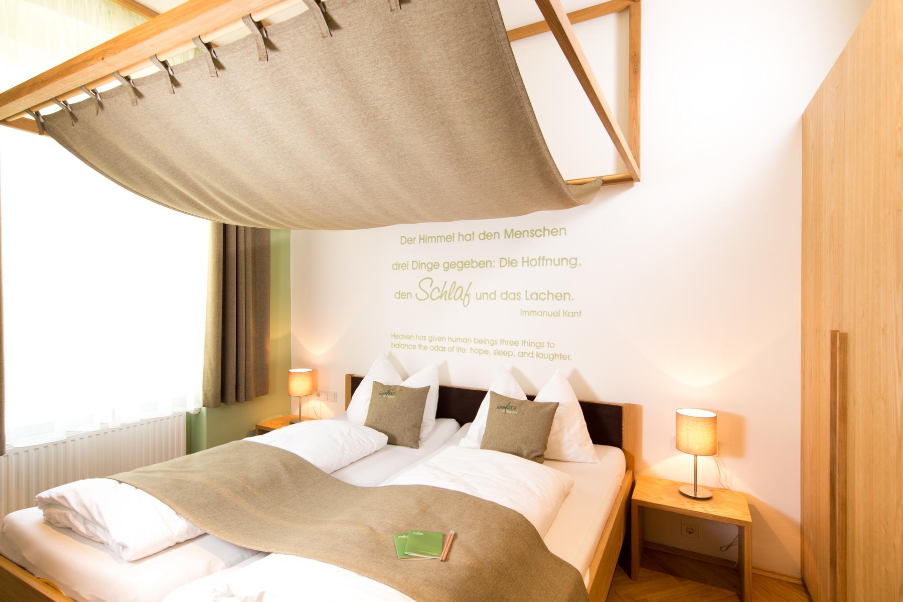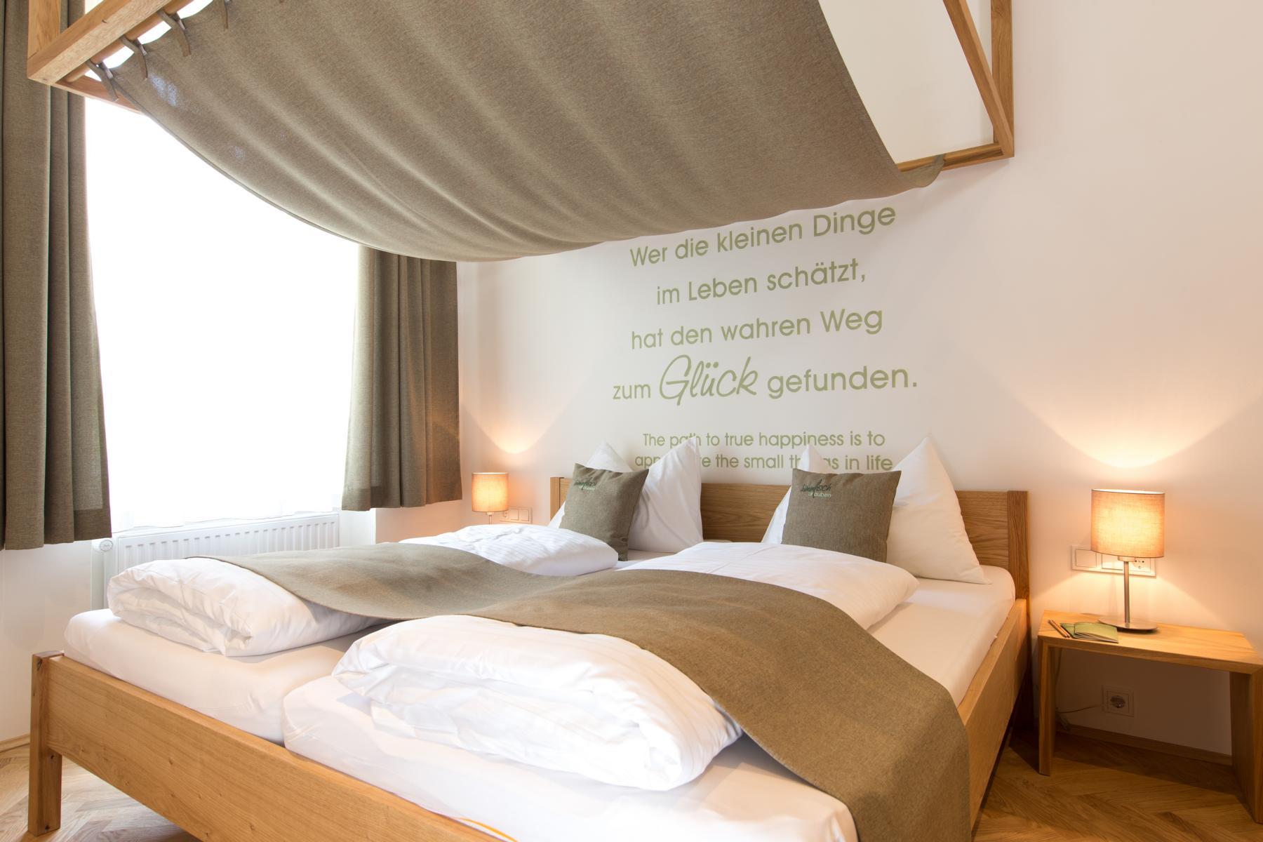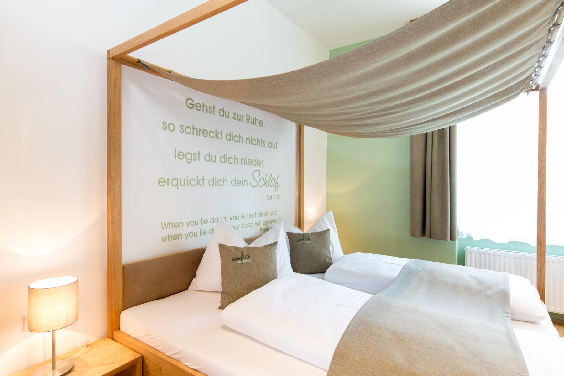 Nach einem behutsamen Umbau und einer Sanierung des Hauses stehen Ihnen seit Ende Mai 2015 vier Appartements im Obergeschoß für eine Auszeit zur Verfügung. Wie in all unseren Häusern wurde auch hier viel Augenmerk auf natürliche Materialien und eine angenehme Wohnatmosphäre gelegt. Zentrales Element aller Appartements sind die Himmelbetten, die teilweise eine überraschende Ausführung aufweisen. Besonderes Highlight ist das Appartement Hl. Dreifaltigkeit, das einen direkten Blick aus dem Wohnzimmer auf den Altar der angrenzenden Kirche ermöglicht.