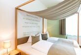 Natürlich darf auch hier das Himmelbett nicht fehlen. Mit Blick ins Grüne, genießen Sie hier ruhige und erholsame Stunden.