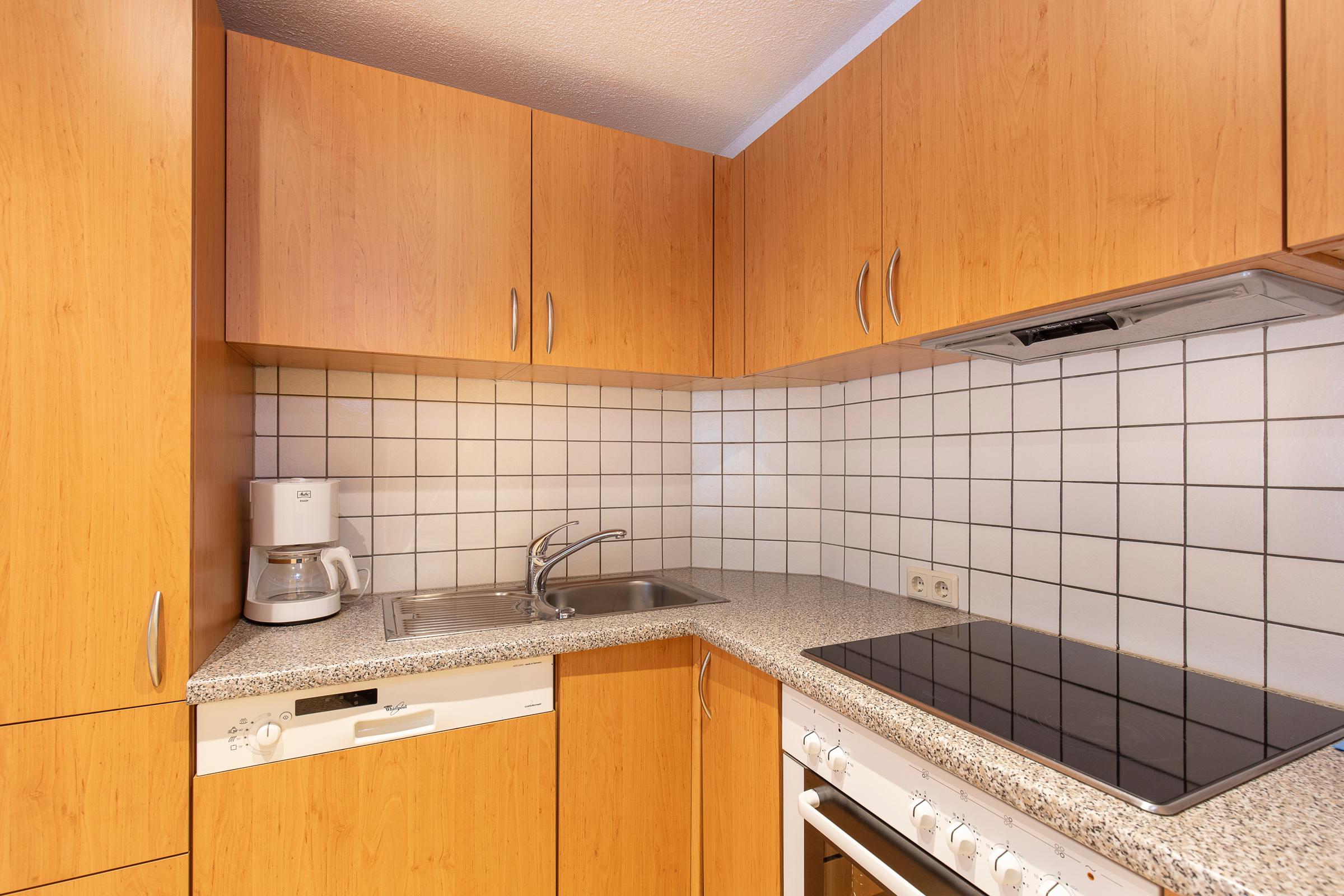 Appartement mit 1 Doppelzimmer mit Sofa, Wohnraum mit Schlafcouch (für 2 Personen), TV, Balkon, Safe und Dusche/WC, Essecke und vollausgestattete Küche mit Geschirrspüler, Backofen, Ceranfeld, Kühlschrank mit Gefrierfach, Mikrowelle, Kaffeemaschine,... Größe ca. 44 m²