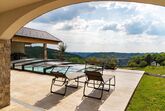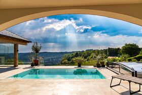 Die Urlaubsoase Hügelperle ist großzügig angelegt und mit ihrer Lage hoch über den Hügeln des steirischen Vulkan- und Thermenlandes eine Rarität. Zwei Urlaubsoasen - Abendrot und Lavendel - stehen für Urlaubsgäste zur Buchung zur Verfügung. Auf jeweils 52 m² genießt man seinen entspannten Uraub und erfrischt sich im Salzwasserpool vor den Türen der Ferienwohnungen.
