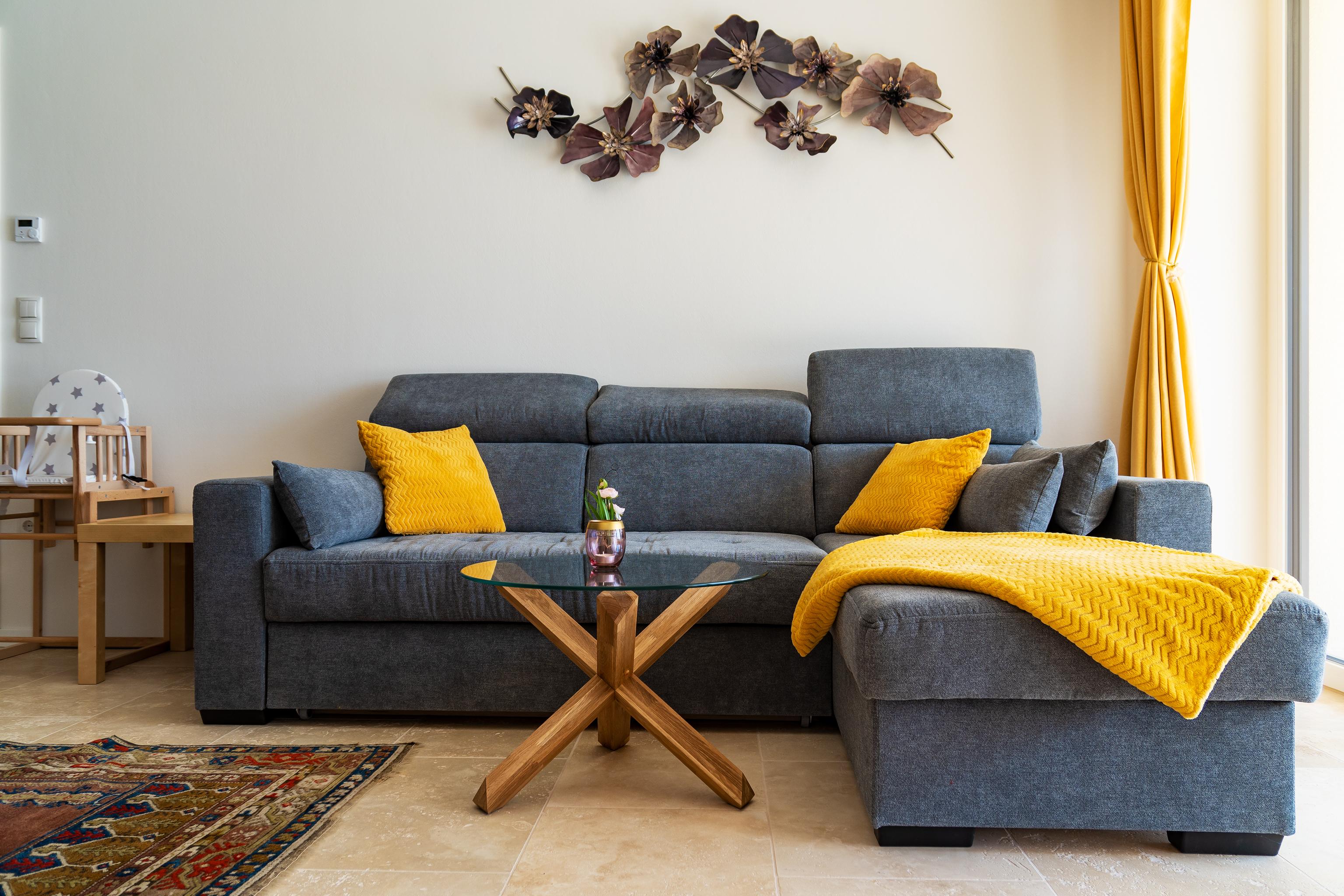 Für erholsamen Schlaf sorgt ein ruhiges Schlafzimmer mit Doppelbett. Im Wohnzimmer lädt eine komfortable Couch zum Entspannen ein, die sich im Handumdrehen in ein gemütliches Schlafsofa verwandeln lässt. Ideal für bis zu 4 Erwachsene oder 2 Erwachsene mit Kinderbett.