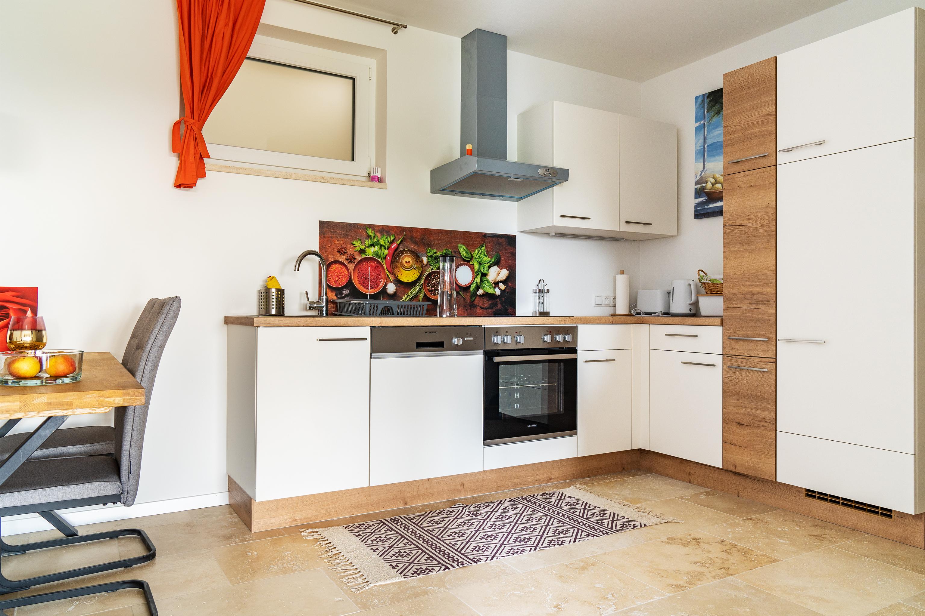 Die voll ausgestattete Küche macht kulinarische Genussmomente möglich – ob Frühstück mit Panorama, ein entspanntes Abendessen oder kleine Köstlichkeiten vom Markt.