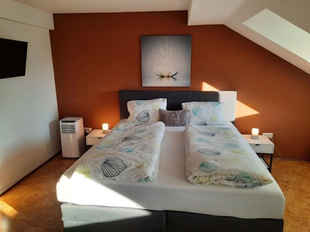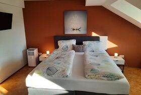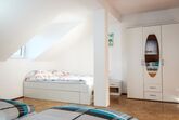 Familienkomfortzimmer mit einem Doppelbett und einem Kingsizebett, Dusche, WC, SAT-TV, gratis WLAN, Fön, Kühlschrank, Sitzgelegenheit, Bademantelverleih