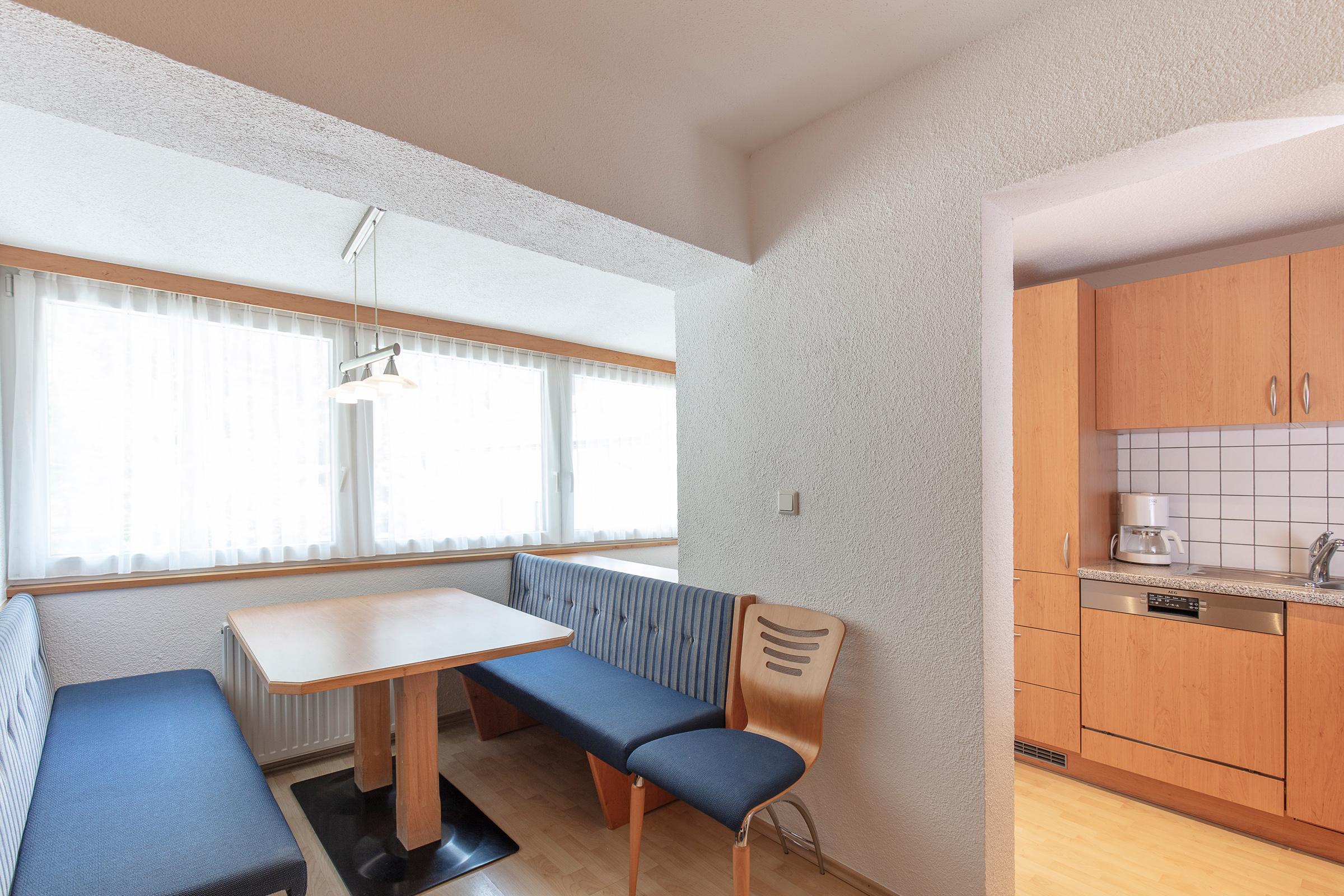 Appartement mit 2 Doppelzimmer mit Verbindungstüre, jeweils mit TV, Balkon; 2 Badezimmer mit jeweils Dusche/WC/Haarföhn; Wohnraum mit Schlafcouch, TV, Essecke und Kochnische mit Geschirrspülmaschine, Ceranfeld, Backofen, Kaffeemaschine, Mikrowelle, Kühlschrank mit Gefrierfach. Größe ca. 57 m²