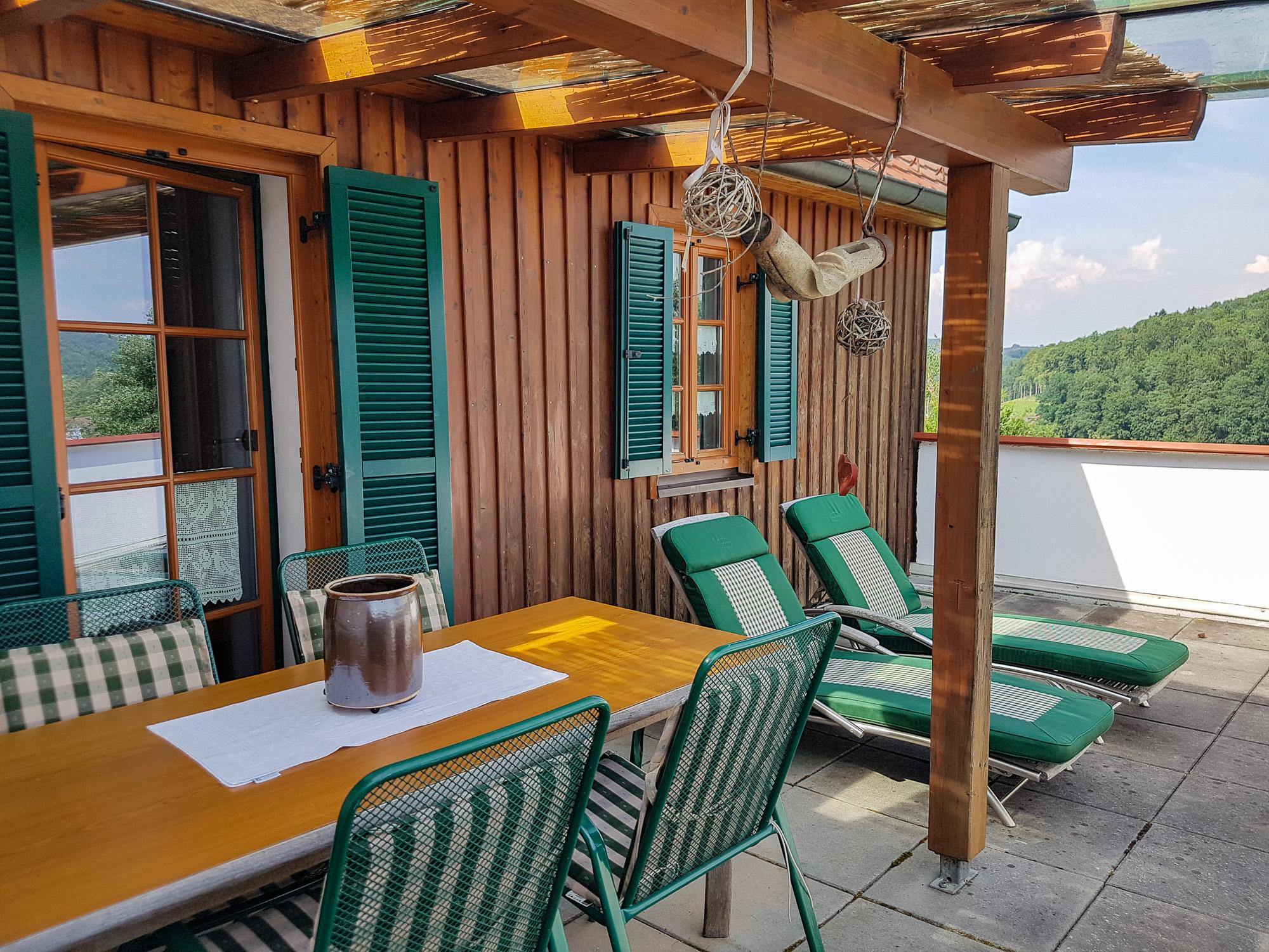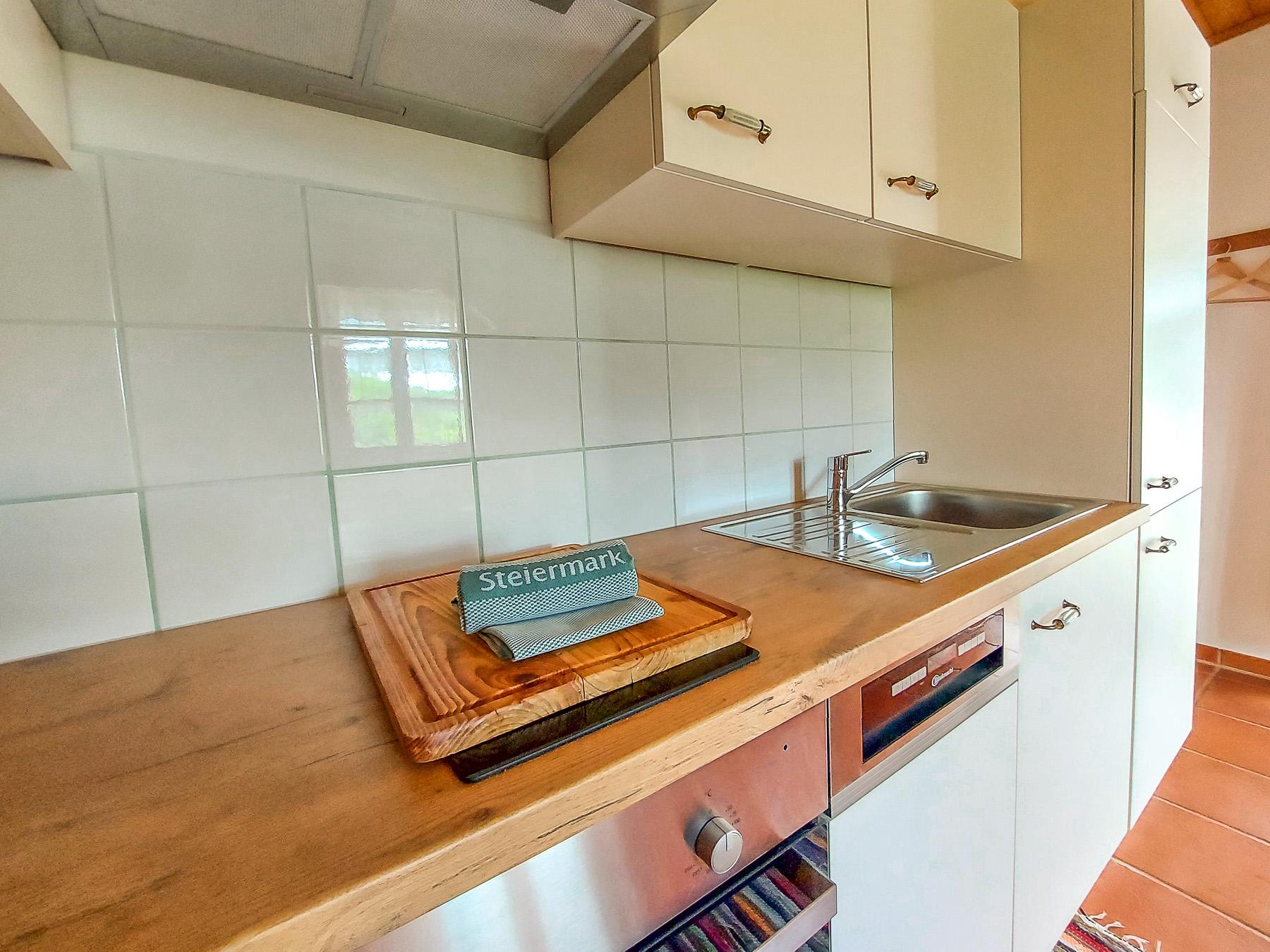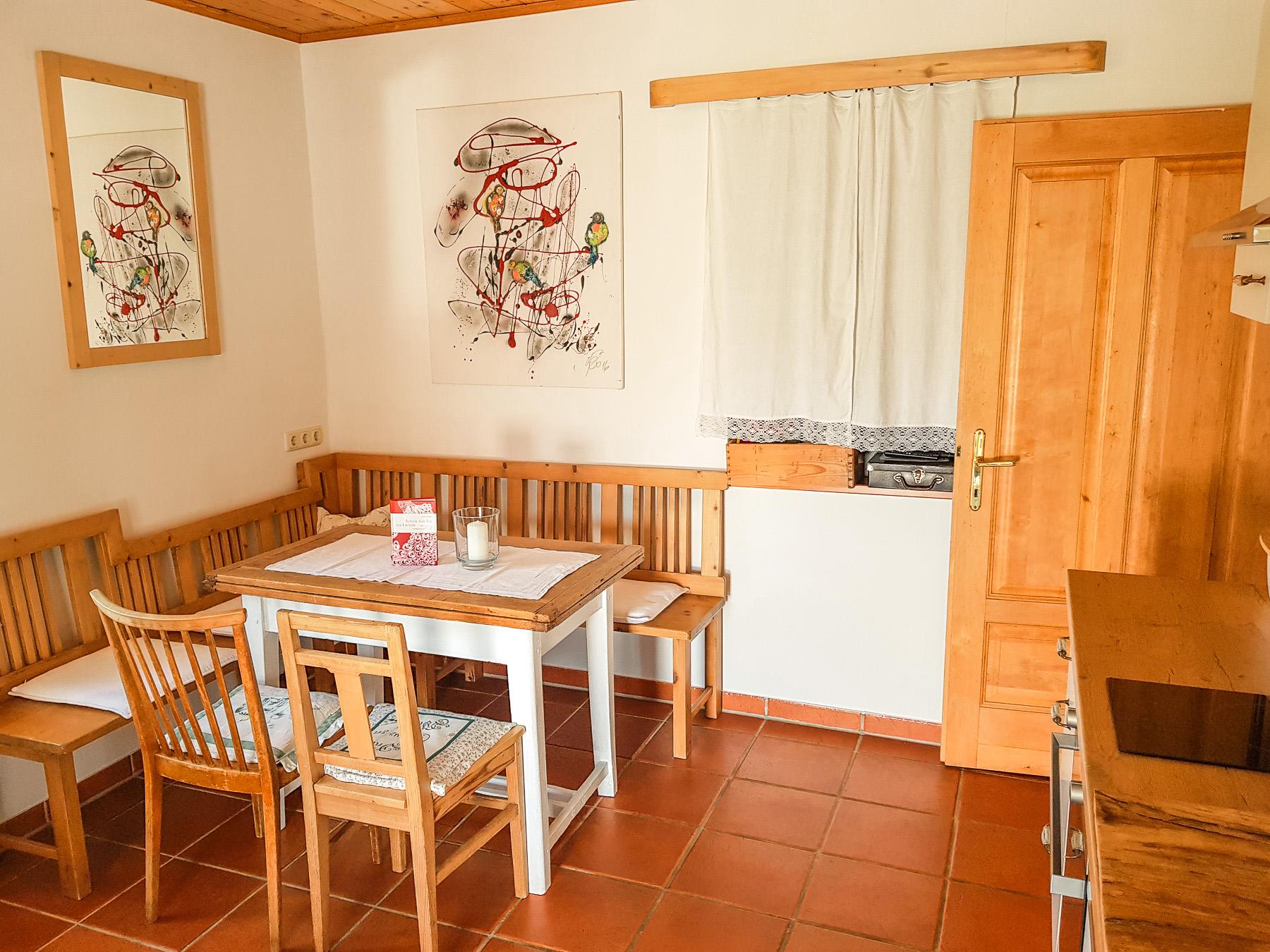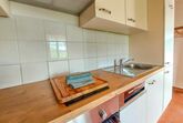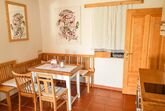 Ebenerdige Nichtraucherwohnung mit komplett ausgestatteter Wohnküche (2 Platten-Herd, Kühlschrank, Geschirrspüler, Mikrowelle, Teekocher, Kaffeefiltermaschine), Esstisch für 4-5 Personen, 2 Ohrensesseln, Sitzgarnitur vor der Wohnung mit Übergang in den Naturgarten. Alle Möbel aus Massivholz. Badezimmer mit 2 Waschbecken, Dusche.