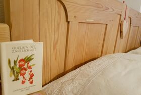 Ebenerdige Nichtraucherwohnung mit komplett ausgestatteter Wohnküche (Mikrowelle, 2-Platten-Herd, Geschirrspüler, Kühlschrank, Teekocher, Filterkaffeemaschine) Esstisch mit Bank, Fernsehdivan, alle Möbel Massivholz, Doppelzimmer, schmiedeeiserne Sitzgarnitur vor der Wohnung mit direktem Zugang zum Naturgarten. NEU ab Mitte März 2024: privater Balkon mit Blick ins Grüne.