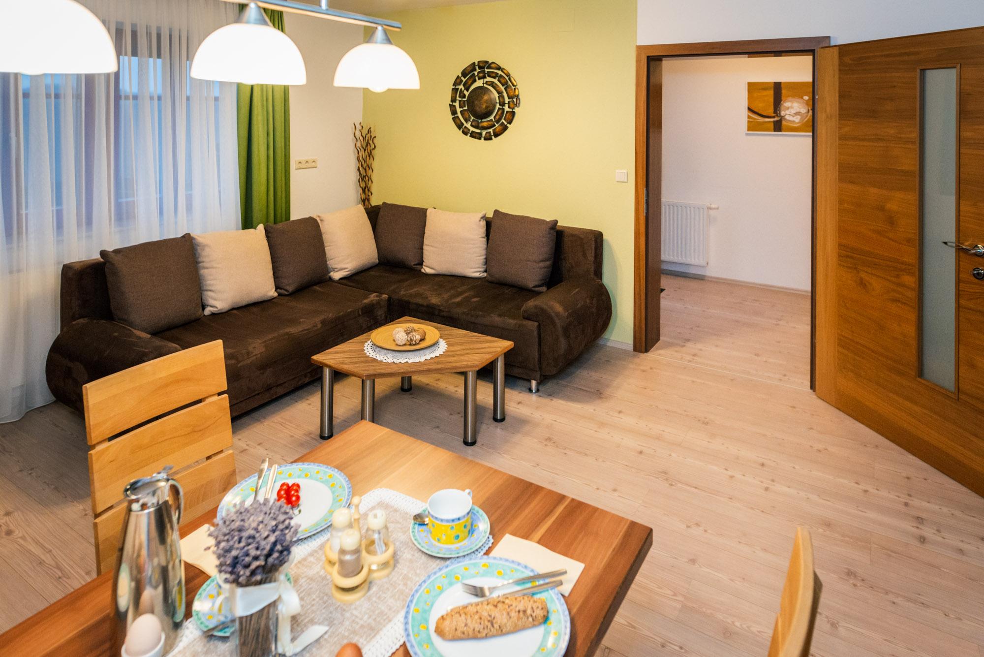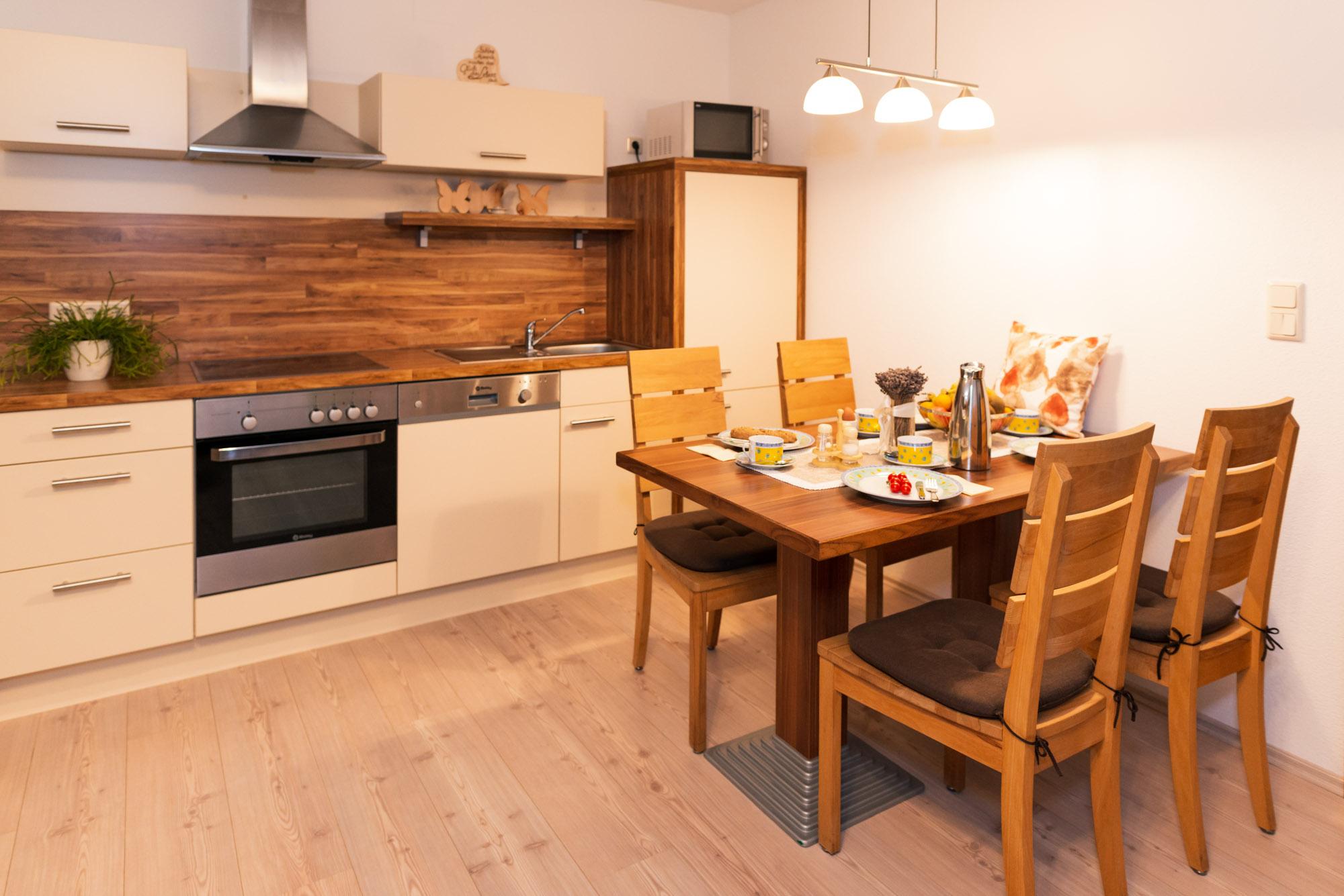 Die gemütliche Ferienwohnung bietet Ihnen auf 50 m² die schönste Möglichkeit, hier zu wohnen! Sie ist mit Massivholzmöbeln eingerichtet und mit eigenem Vorraum, Bad mit Dusche & WC, einer Wohnküche mit SAT-TV, WLAN und einer kompletten Küchenzeile mit Kühlschrank inkl. Gefrierfach, Mikrowelle und Geschirrspüler ausgestattet. Das ausziehbare Sofa bietet zusätzlichen Platz zum Schlafen für 2 Personen.